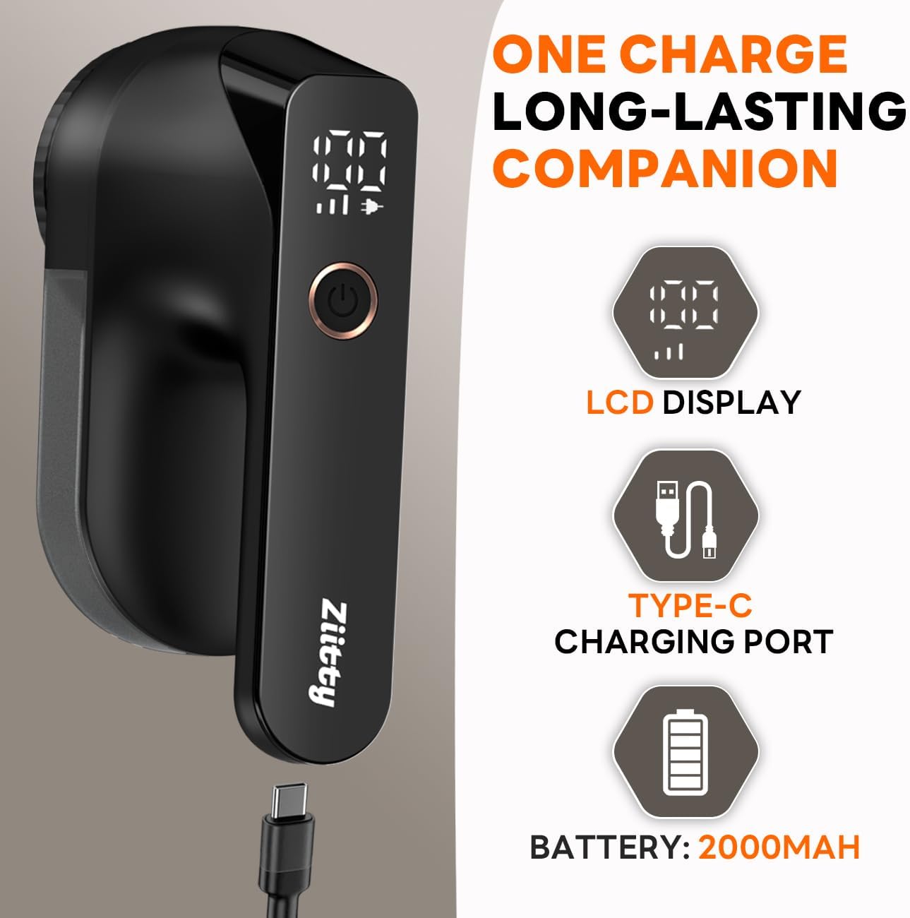 Fabric Shaver - Ziitty Lint Remover for Clothes, Sweater Defuzzer with LCD Display, 3-Speeds, 6-Blade, Type-C Rechargeable, Sweater Shaver to Remove Pilling Fuzz Lint Balls Pills for Clothes Furniture