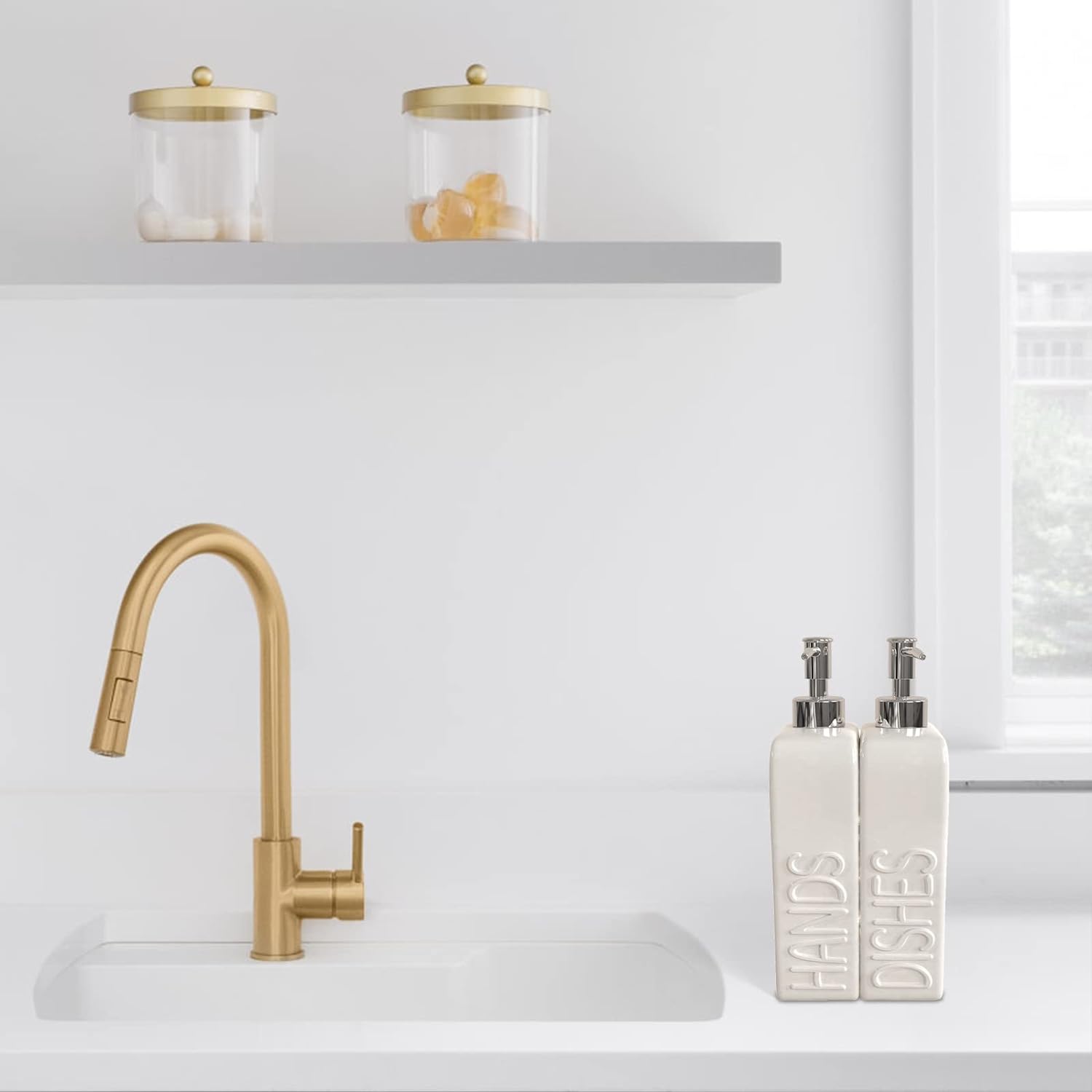 - REFILLABLE SOAP DISPENSER: An eco-conscious and practical solution for storing dish and hand soap, helping to reduce plastic waste