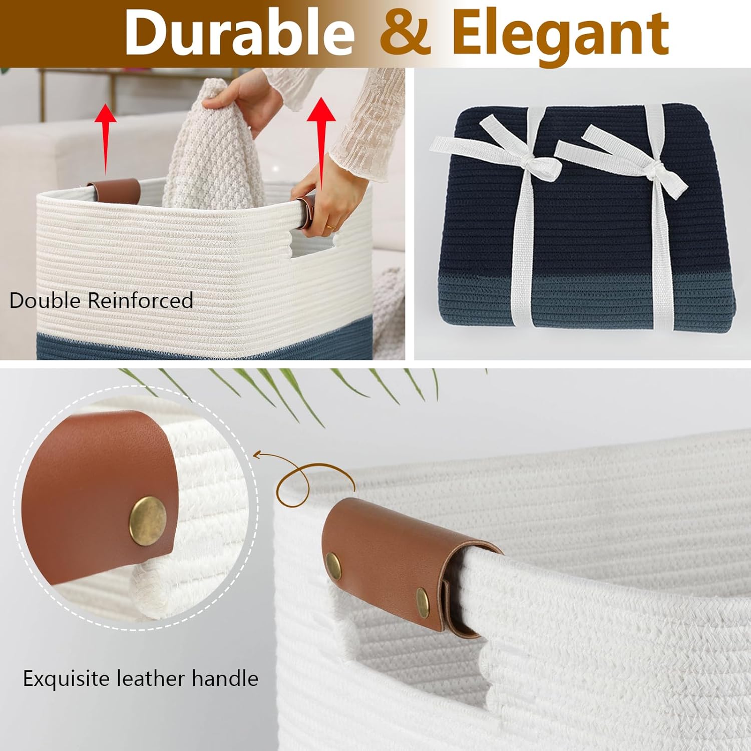 - Natural Handmade & Unique Design: The special hand-woven design makes the style of our blanket basket simpler, the classic color blend seamless with any room decor. The elegant leather handles not only take care of your hands but also add a distinctive highlight to our large baskets
