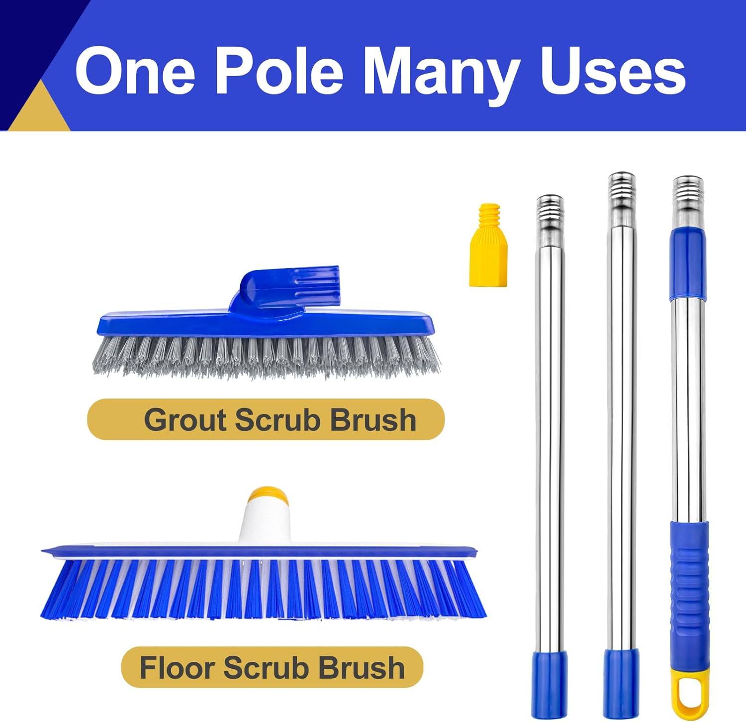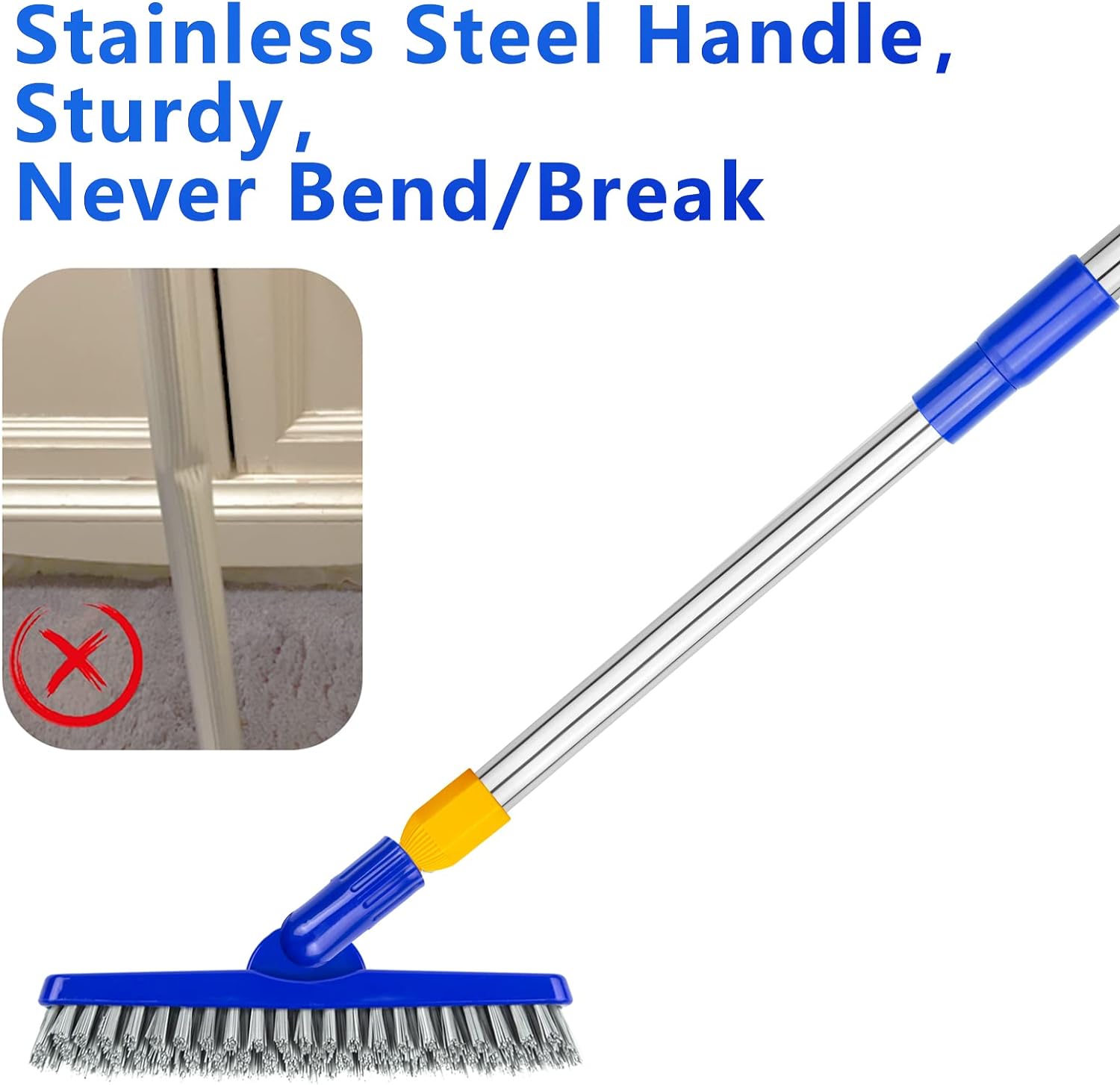 - Durable Extendable Long Pole: The strong stainless steel handle can be disassembled and attached to the tile grout brush head easily, you can adjust handle length from 20" to 56" even longer. Easily scrubbing hard-to-reach areas, bathroom tile and floor without bend your back and knees. You can adjust the length to fit in different areas. What's more, the threaded pole end is made of iron cast, which is sturdy, it will not break even you clean vigorously
