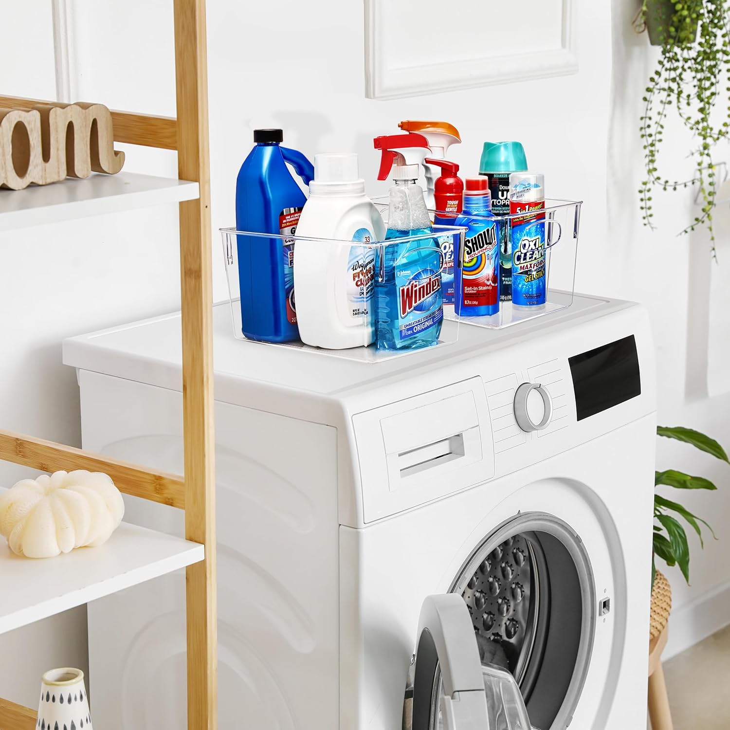 - Clear Containers for Organizing: Clear design of these Sorbus Bathroom Storage Bins allows you to view whatβs stored inside effortlessly - Access and restock your essentials in seconds - Save time and hassle searching through clutter - Group cleaning supplies together - Grab and go, easy access!