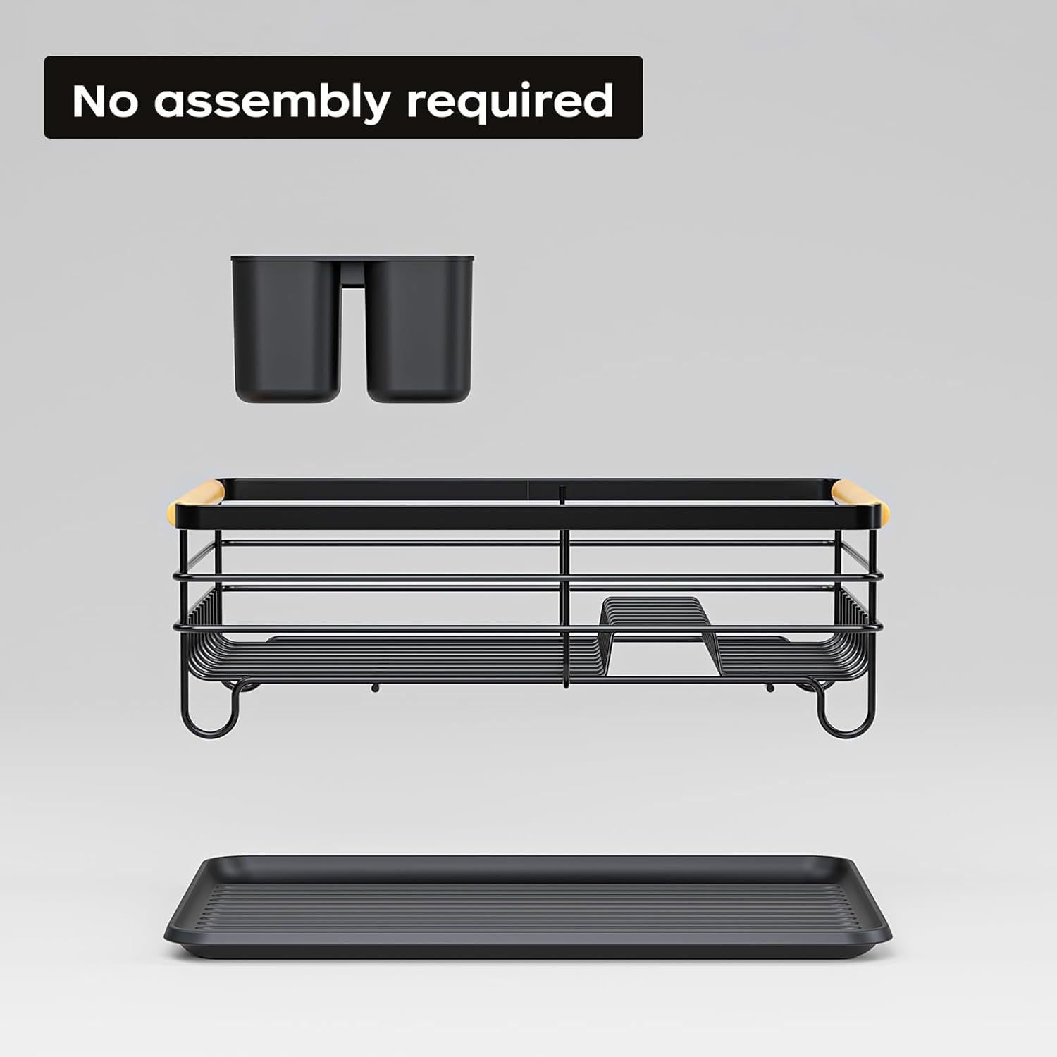 Dish Racks for Kitchen Counter: Wooden Handles, Thickened Metal, No Assembly. Small Dish Drying Rack: Ideal for Small Households. Drying Rack Kitchen: Black