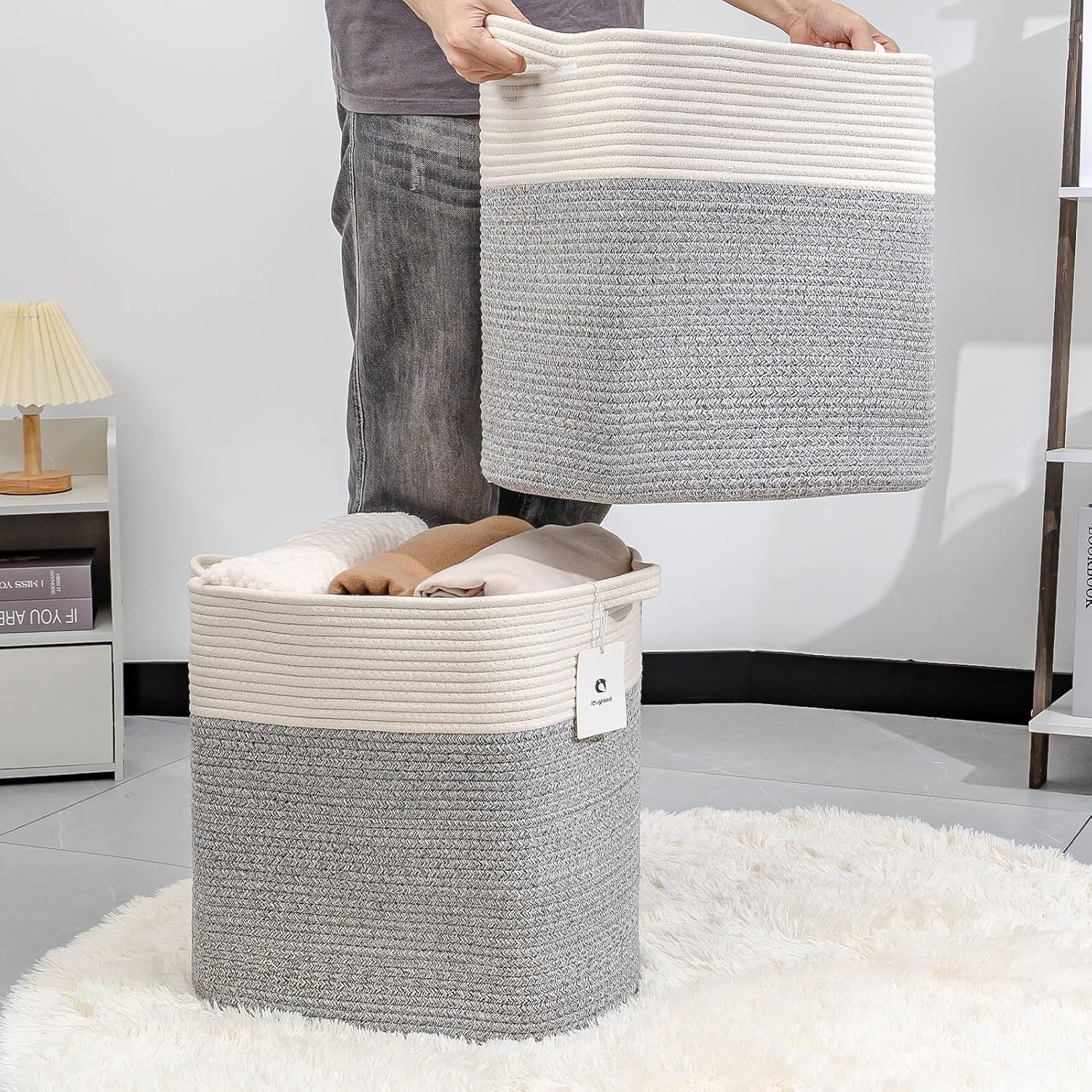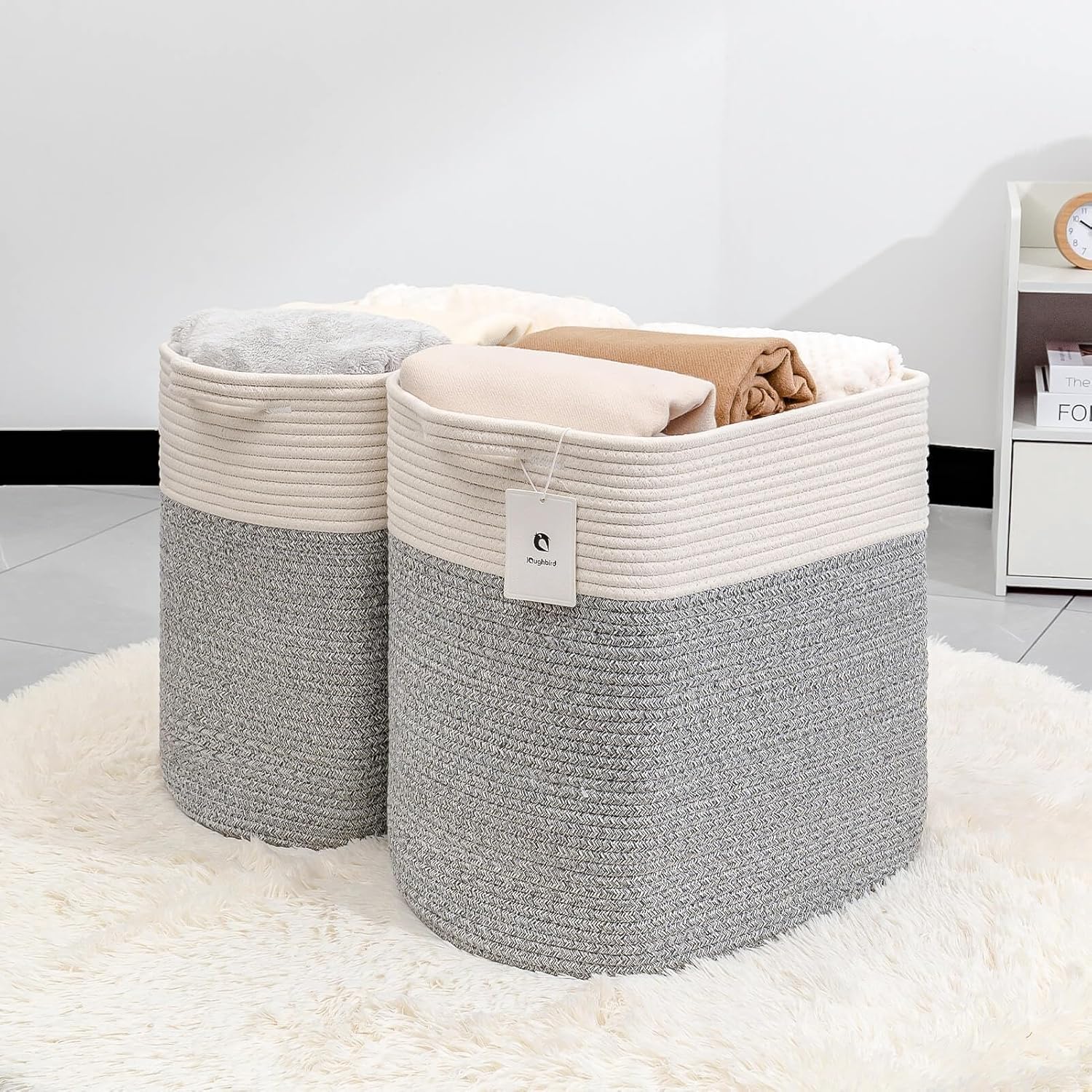 - Large cotton tall rectangle baskets storage blanket toy for shelf basket rope Woven Laundry torage bins