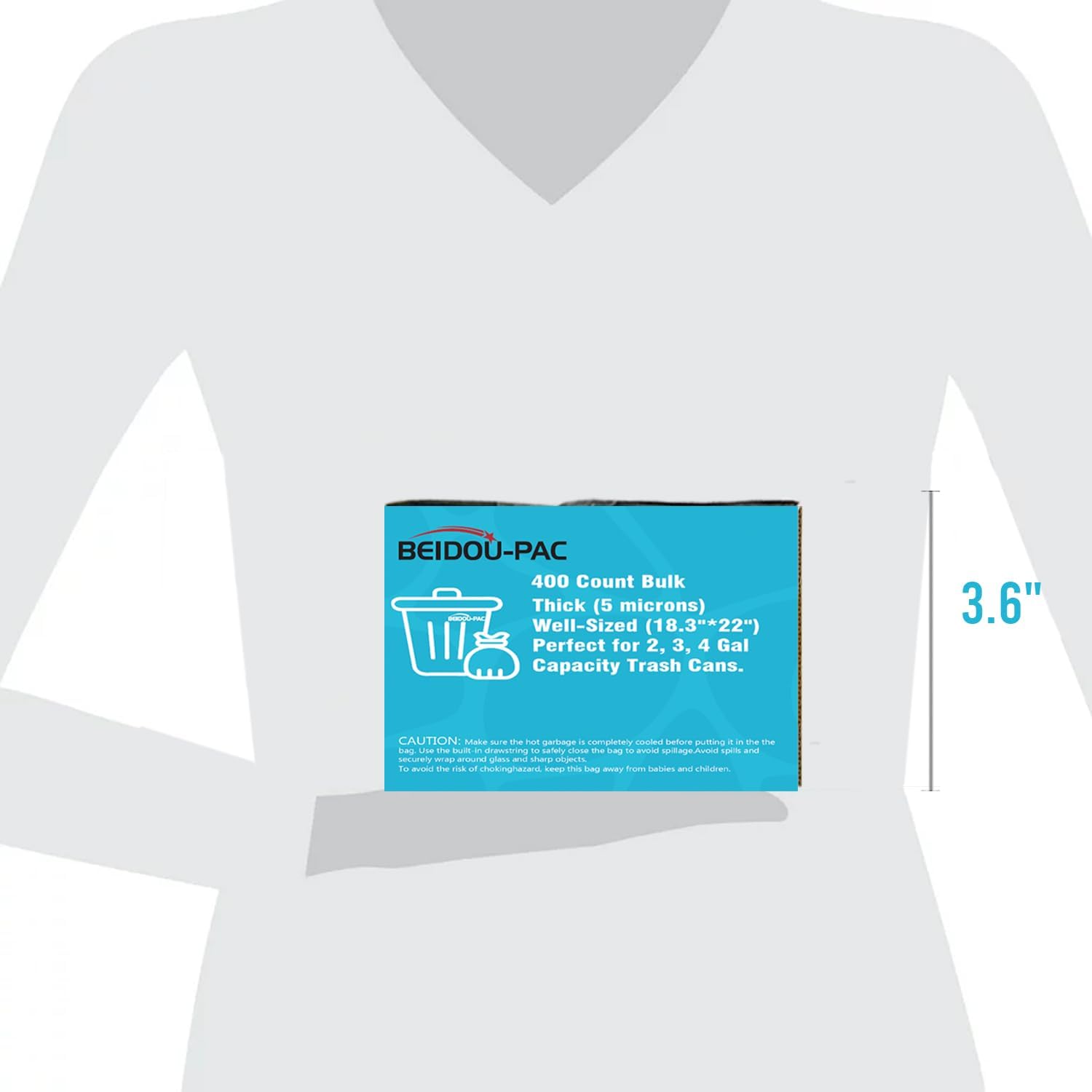 - 1, Product information: BEIDOU-PAC 2-4 gallon clear plastic recycling Can Liners, Size: 18.3"*22"x 5 mic, Total 400 clear bags bulk (50 PCS/ROLL , 8 CORELESS ROLLS/CTN), Perfect for 2, 3, 4 Gal Capacity Office, Bedroom and Kitchen Wastebasket trash bins.
