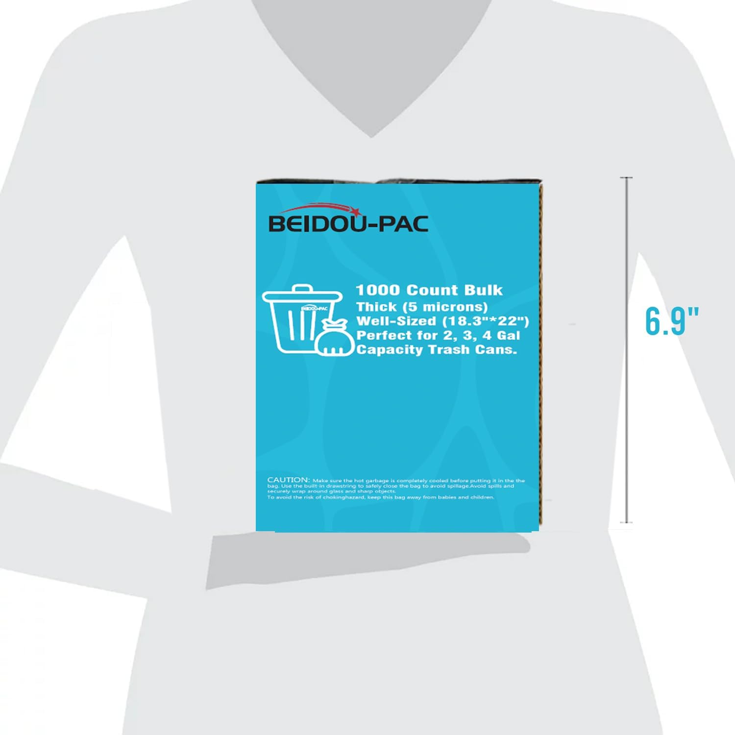 - 1, Product information: BEIDOU-PAC 2-4 gallon clear plastic recycling Can Liners, Size: 18.3"*22"x 5 mic, Total 1000 clear bags bulk (50 PCS/ROLL , 20 CORELESS ROLLS/CTN), Perfect for 2, 3, 4 Gal Capacity Office, Bedroom,Bathroom and Kitchen Wastebasket trash bins.