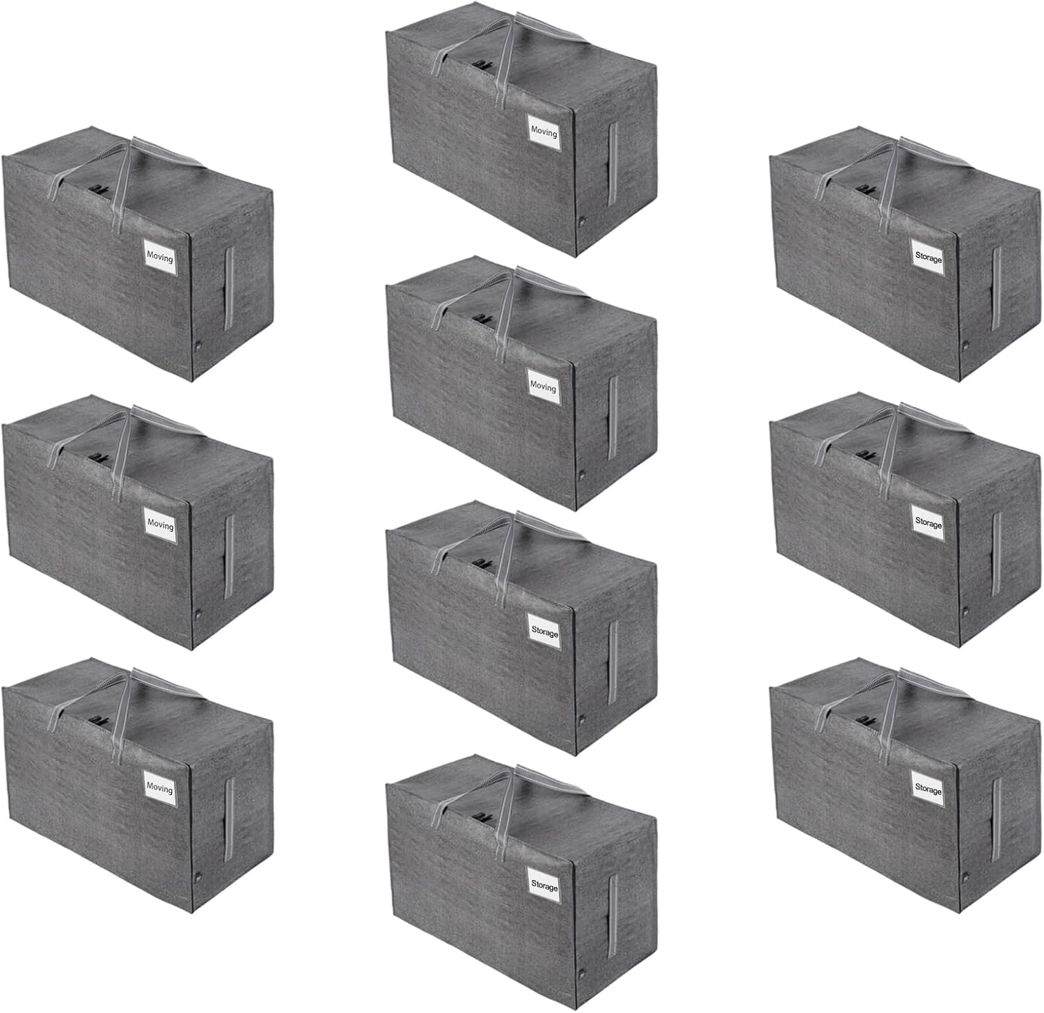 VENO 10 Pack Moving and Storage Bags, Heavy Duty, Alternative to Moving Boxes, Large Packing Totes Supplies for College Dorm Room with Zipper for Clothes, Wide Open Design (Dark Gray, 10 Pack)