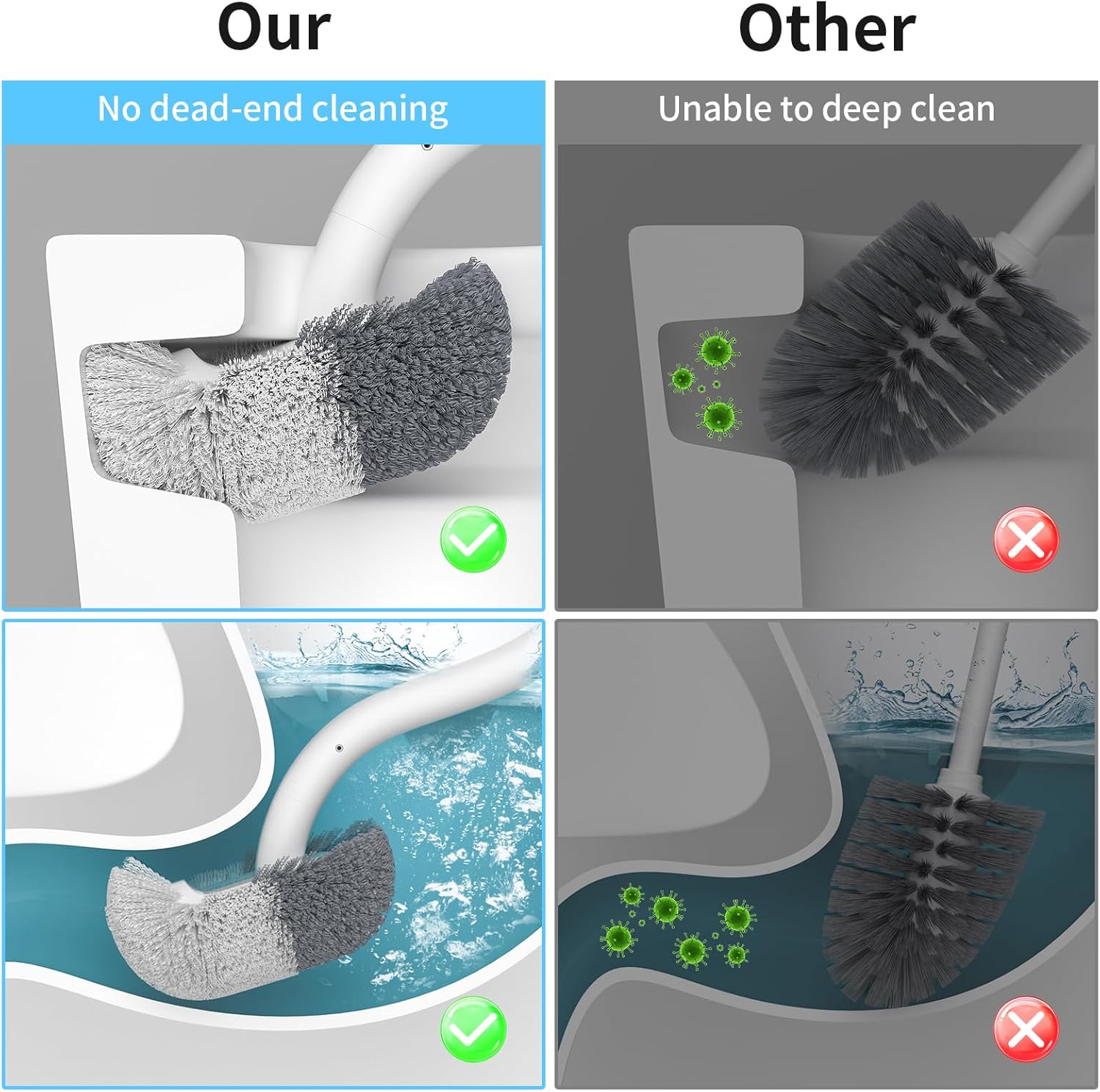 - DEEP CLEANING:Hemispherical brush head design for deep cleaning under the rim and other hard-to-reach places, No dead Angle brush head , More thorough cleaning , Will give you a clean toilet.