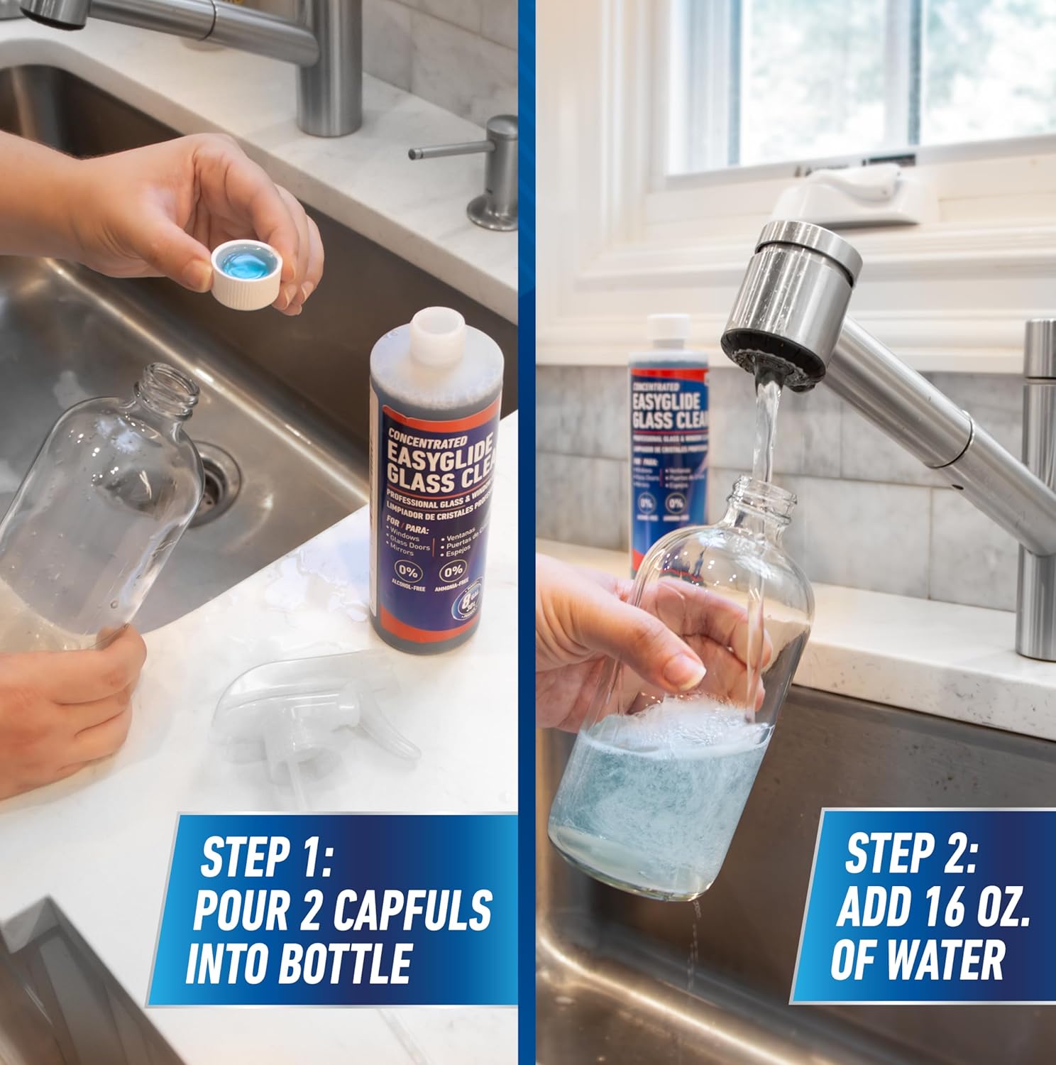 - Simply Mix and Clean: This 12 oz. concentrated glass cleaner makes up to 8 gallons of solution when mixed with water. For best results, use with an Unger window scrubber and squeegee (both sold separately) for professional window cleaning results