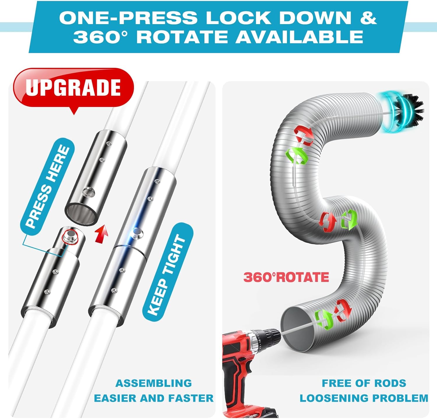 - Special Feature : 50 Feet, Upgraded Flexible Quick-Snap Brush with Drill Attachment