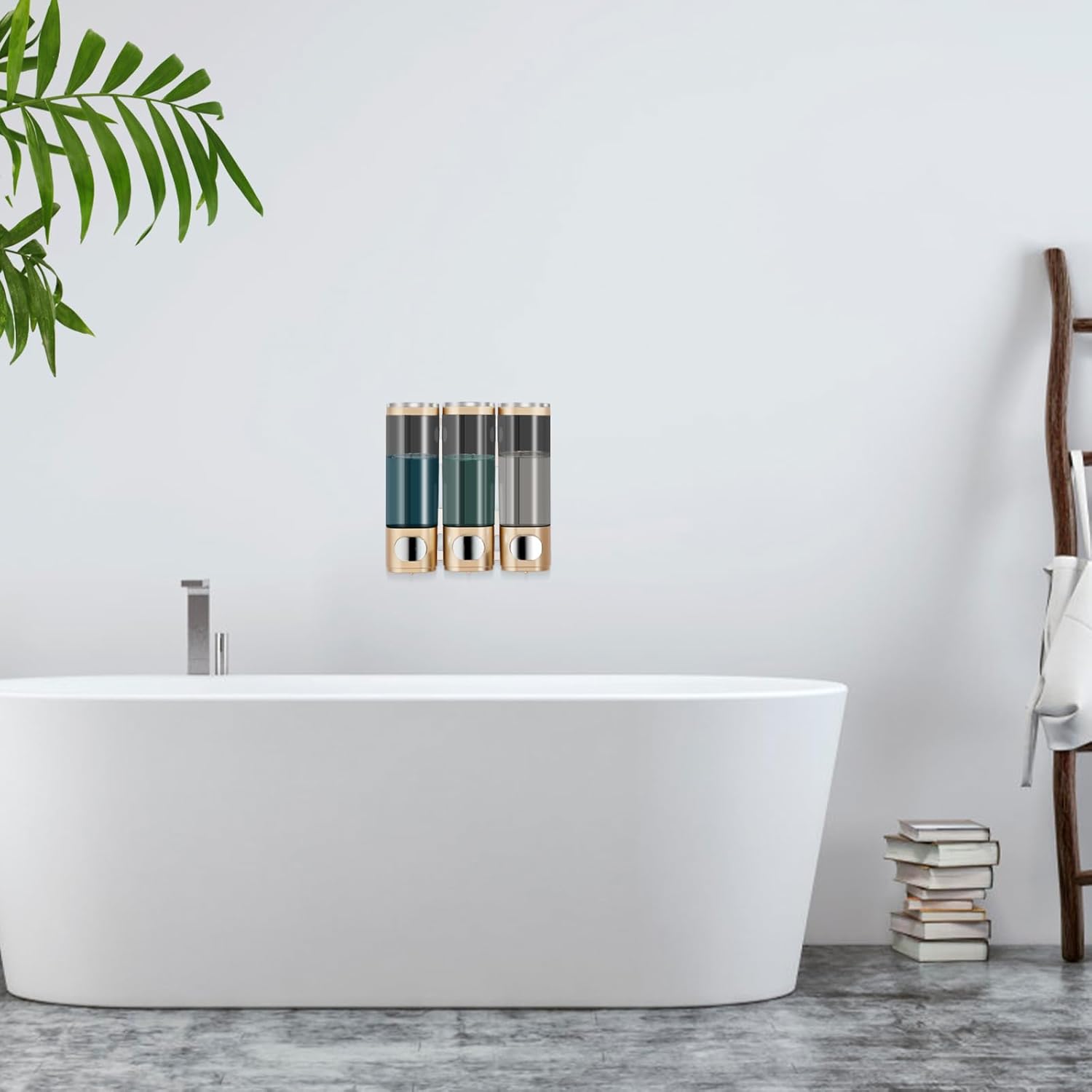 pollock Shampoo Conditioner Dispenser Shower Soap Dispenser 3 Chamber No Drill Shampoo Dispenser for Shower Wall Mounted Shampoo Conditioner Body Wash Dispenser for Bathroom Hotel Gold