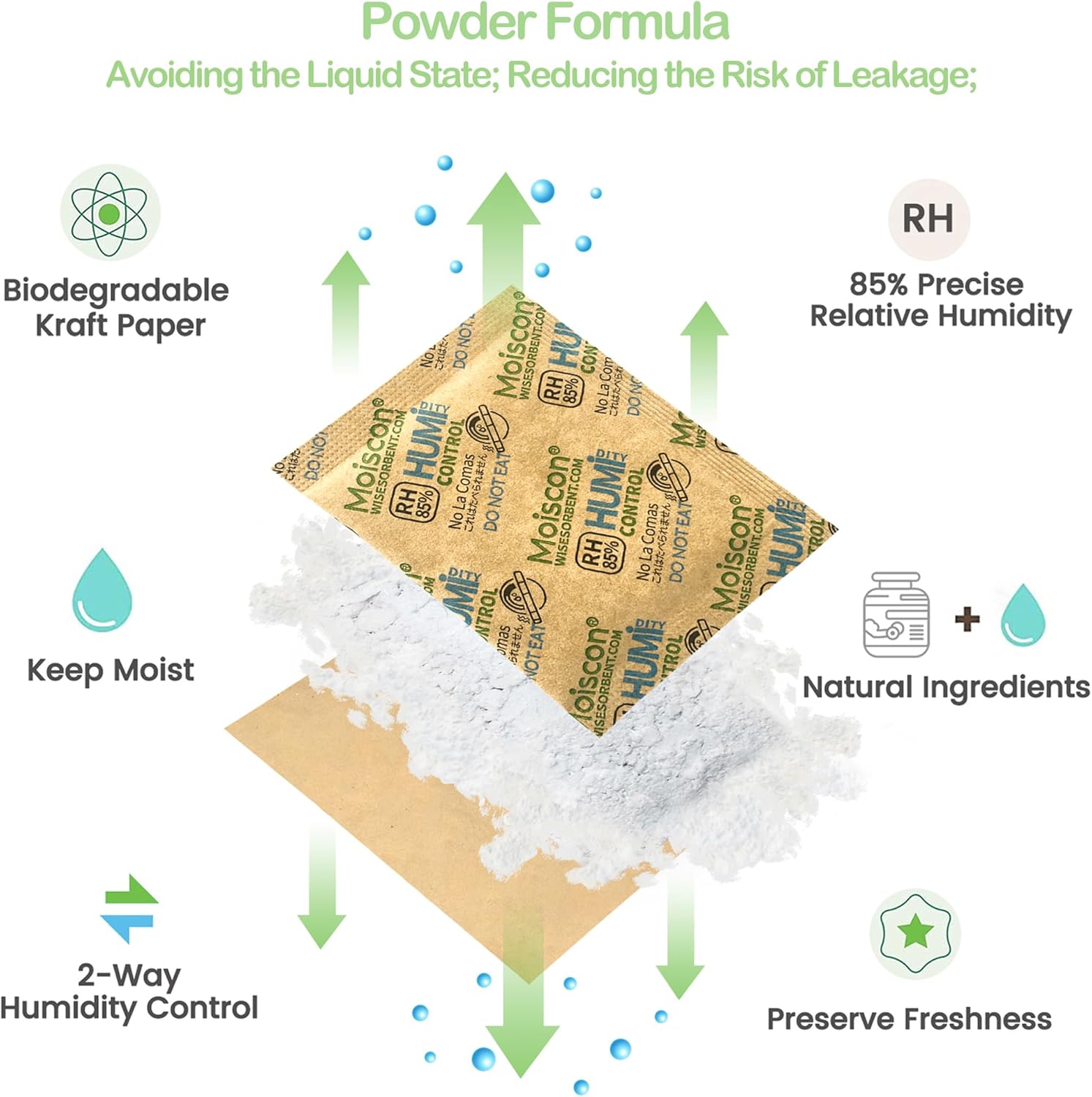 - 【Packed with Kraft Paper】: Humidity Control Packet is packed with environmentally friendly and biodegradable kraft paper, ensuring safety and harmlessness. Kraft paper packaging material is not only biodegradable and recyclable but also offers excellent tear resistance, breathability, and dust-free properties. Buy using humidity pack you don't have to worry about adding water to the box or using a hygrometer anymore. Your box or jars naturally keeps its humidity at 85%RH.