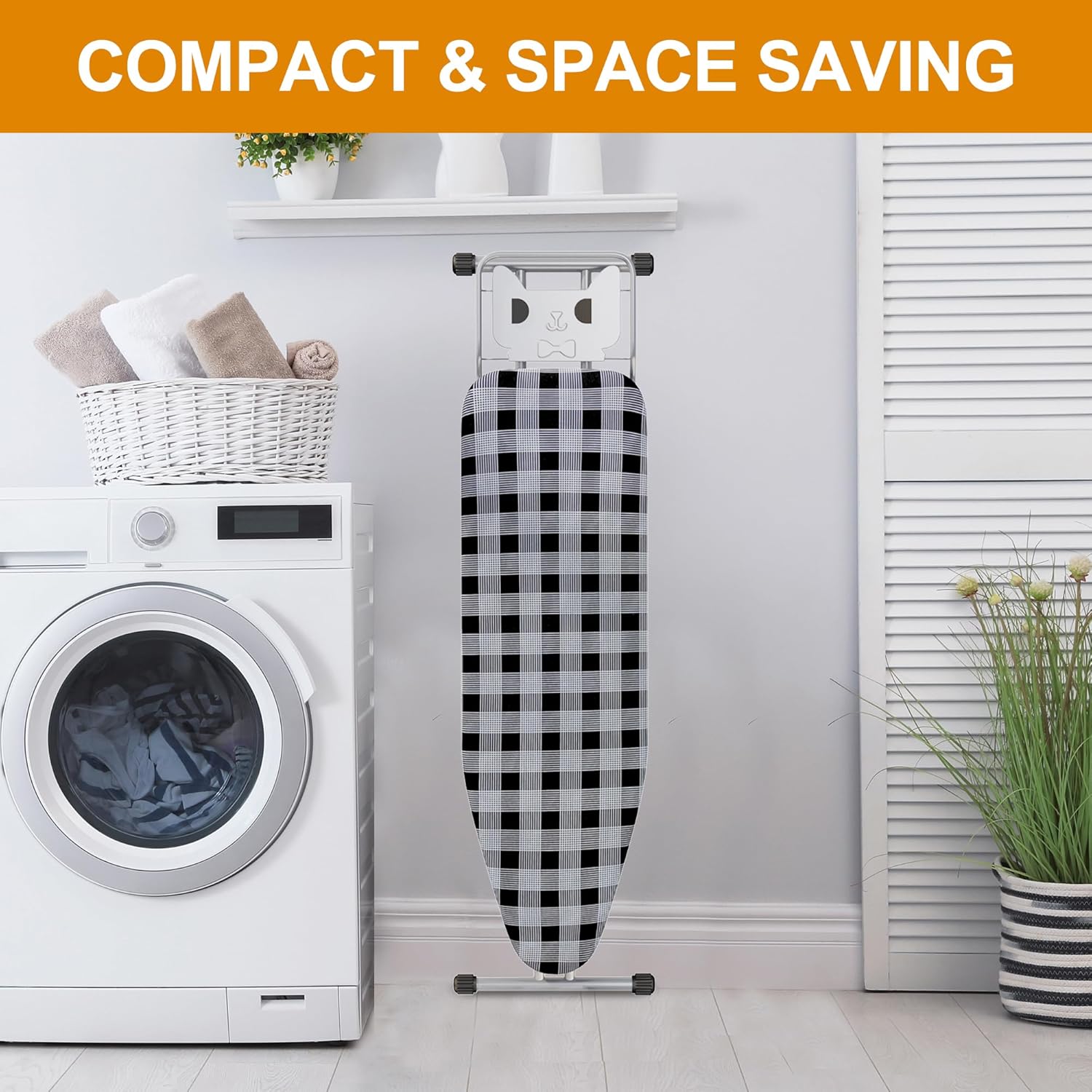 Ironing Board 13" X 43" W/Extra Thick Heavy Duty Padded Cover, Height Adjustable,Heat & Scorch Resistant Fabric, Anti-Skid Feet, Extra Wide, Easy to Fold Checkered Gray