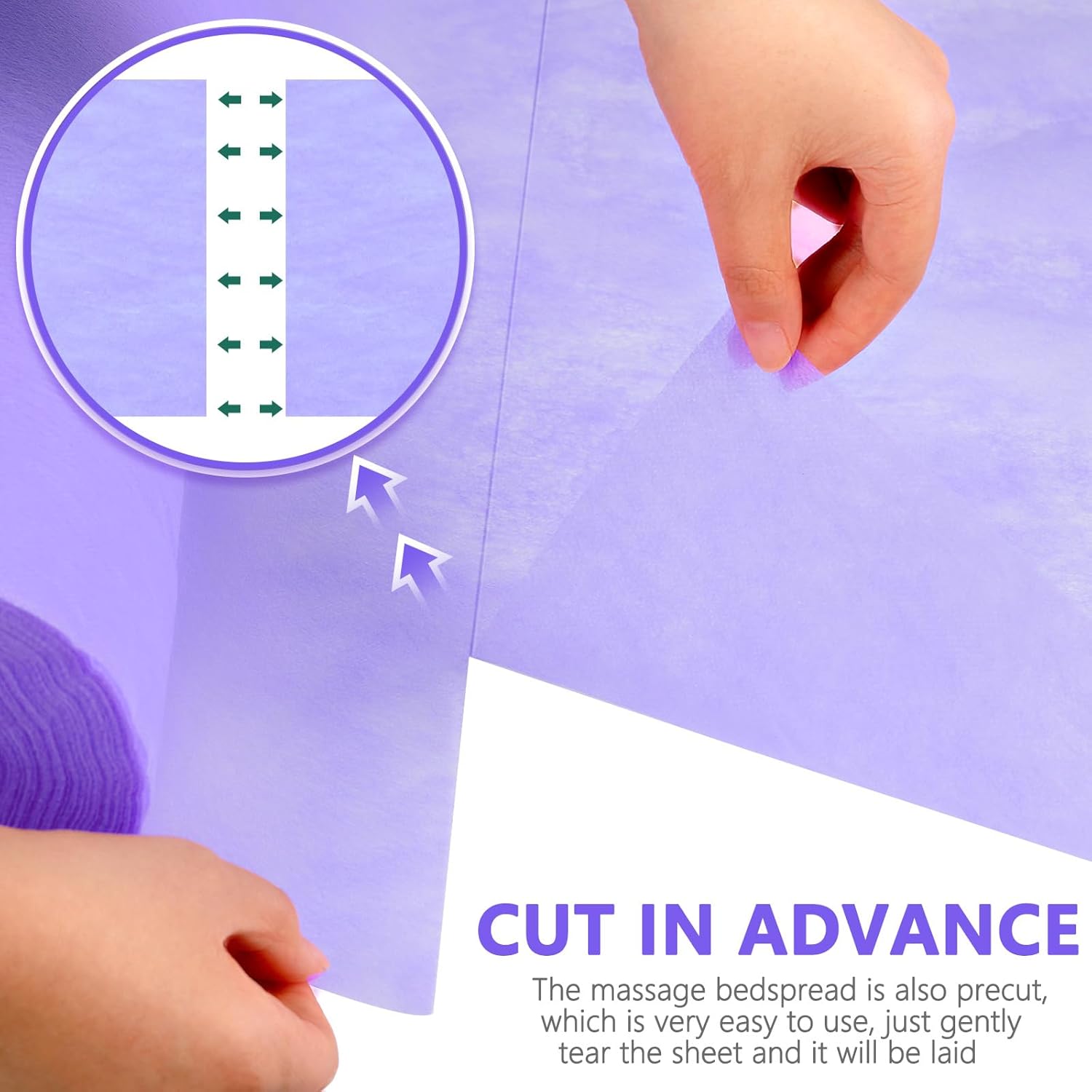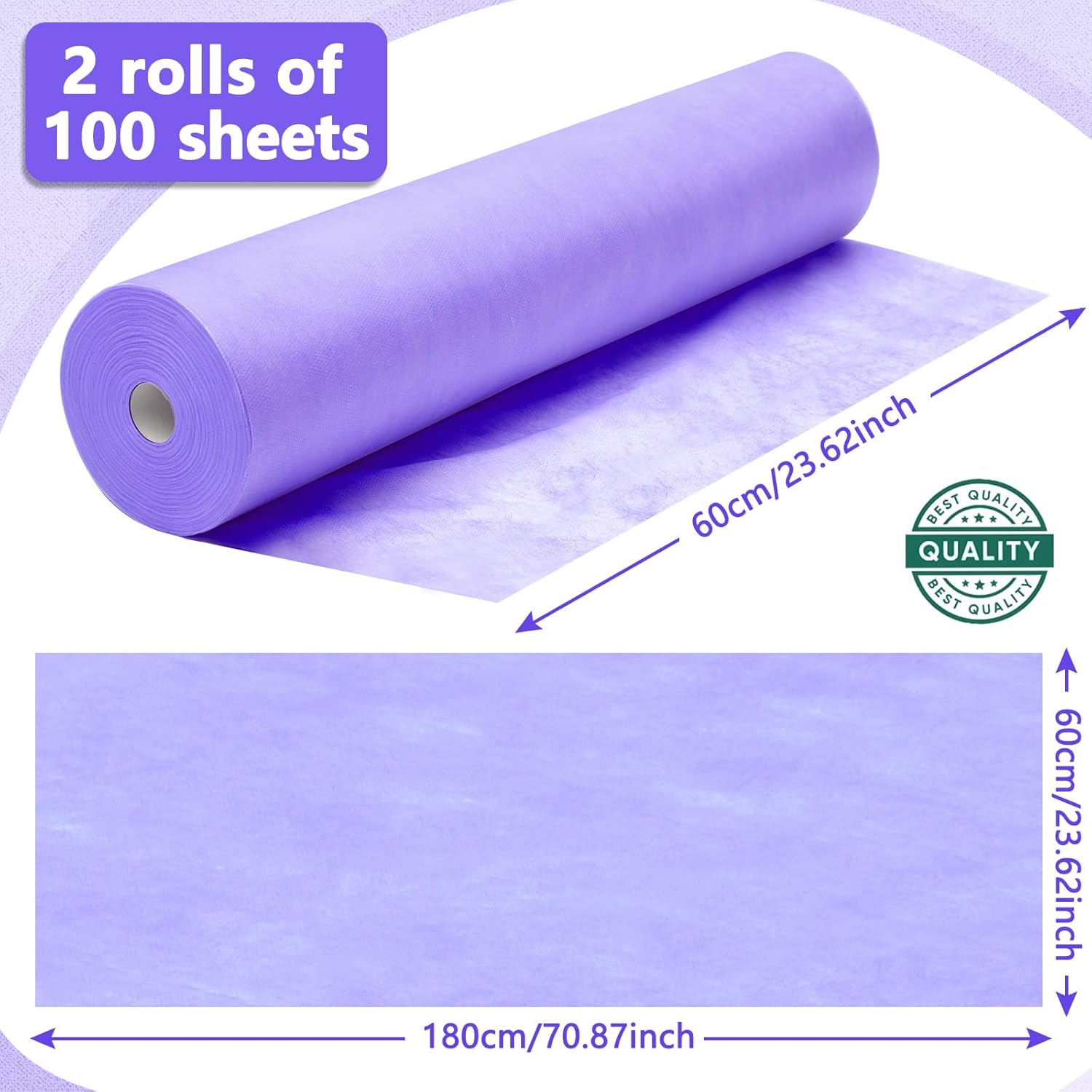 - Package information: 2 rolls of disposable non woven sheets in purple, each measuring 23.62 x 70.87 inches; Different colors can be applied to distinguish different functions, 100 sheets in 2 volumes, which is enough to use for a while