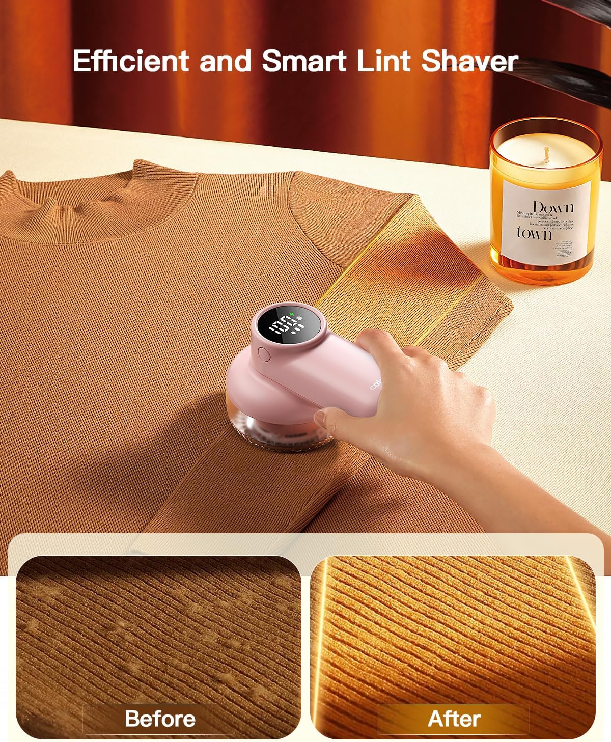 coldSky Rechargeable Fabric Shaver, Lint Shaver with Digital Display, Sweater Shaver with 6-Leaf Blades and Safety Lock, 3-Speeds Defuzzer Remove Fuzz, Pills from Clothes, Furniture, Sofa, Pink