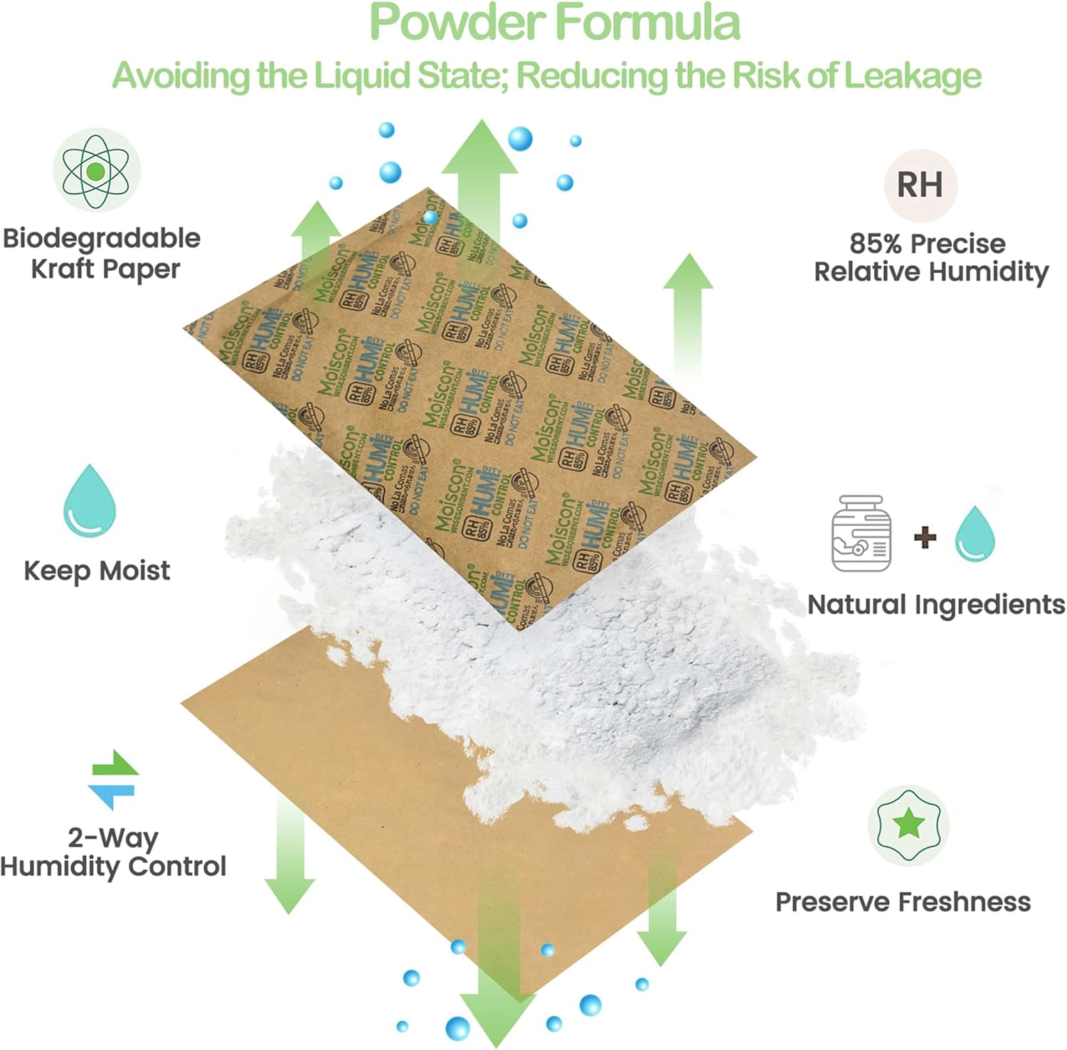 - 【Powder Formula—Utilizing Premium-Quality Raw Materials】: Humidity packs consist of silica, salts, and water, but they are in powdered form. Unlike other brands of humidity control packs, Wisesorb utilizes a powder formula, ensuring that even during the process of absorbing or releasing moisture, they won't turn into a liquid state. So, please do not mistake them as "dried out" and ineffective upon receiving the product. This design reduces the risk of leakage and ensures stable performance.