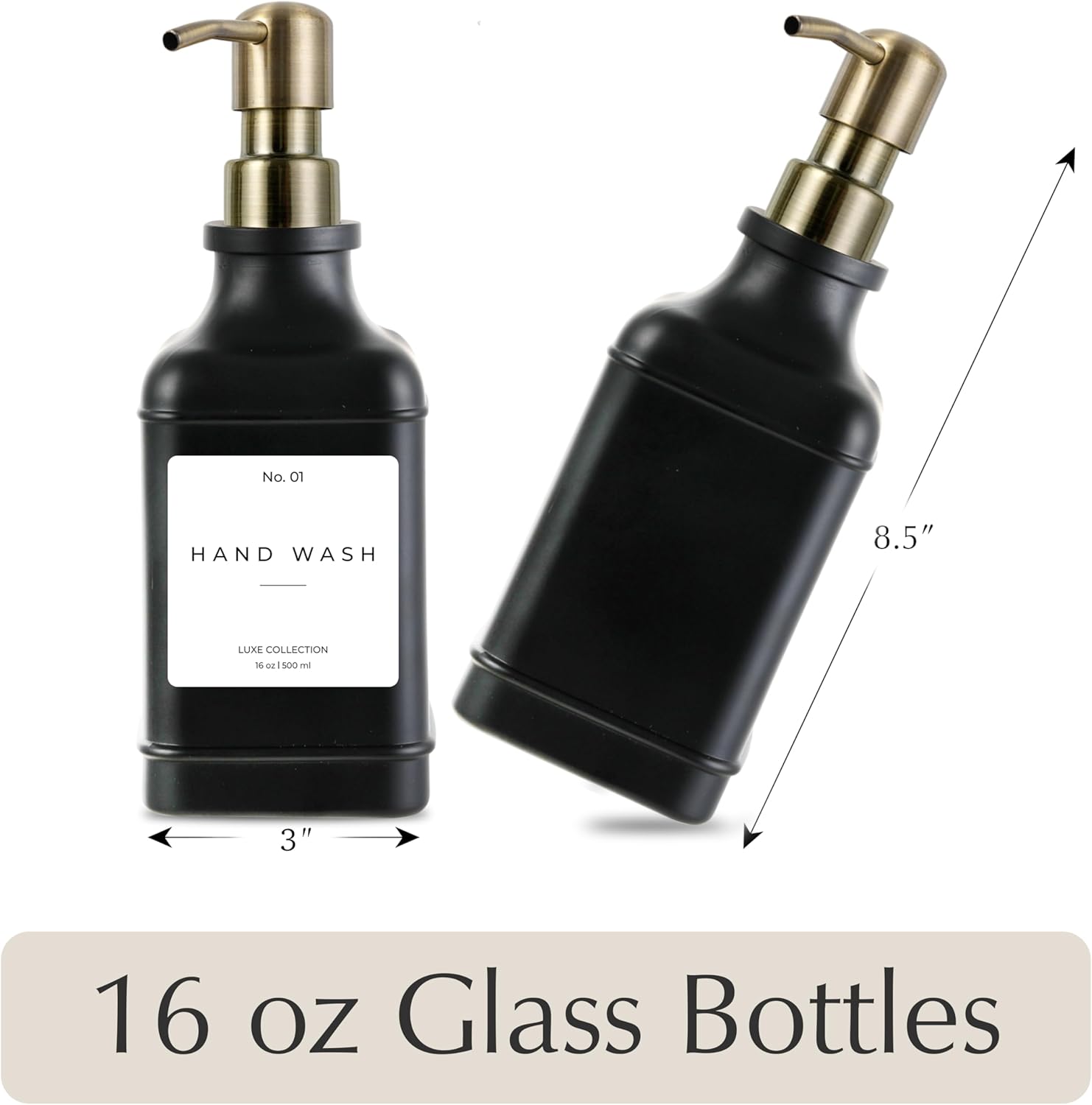 - β PREMIUM QUALITY THAT LASTS: Designed to complement any space, these 16 oz glass soap dispensers are perfect for hand soap, dish soap, lotion, or shampoo. Ideal for sinks in your kitchen, bathroom, laundry room, or guest bath. Unlike dispensers that peel or break down, our bottles are made from thick, durable glass that resists wear and looks elegant on any countertop.