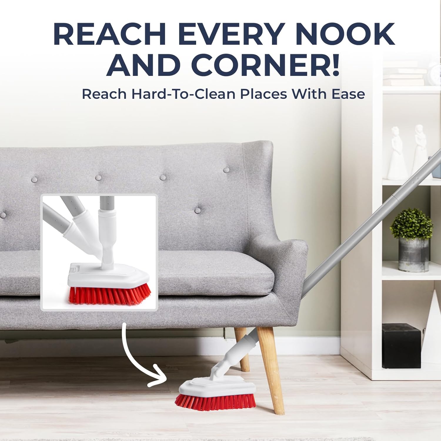 - ADJUSTABLE AND STURDY DESIGN- With an adjustable screw-in pole design and threaded joints that securely lock in place, this scrub brush with long handle eliminates the need to worry about loosening, providing a solid grip and extended reach for efficient cleaning