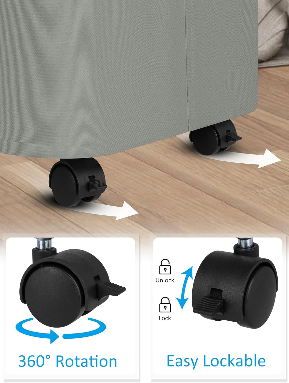- 【Laundry Basket with Wheels】Equipped with 4 sturdy rollers, our laundry hamper glides effortlessly across floors, making it a breeze to transport laundry with minimal effort, and keeping your space tidy with ease.
