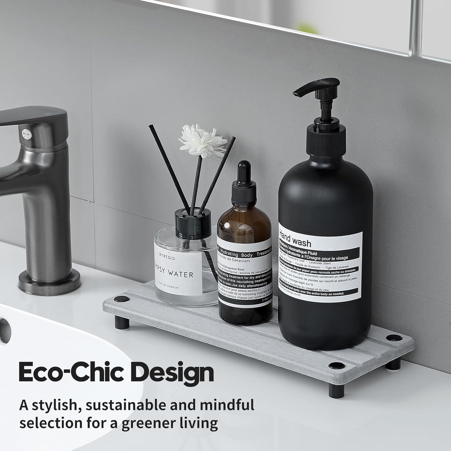 Fast Stone Drying Tray Diatomite Sponge Holder Mat, Kitchen Sink Organizer Sink Caddy, Kitchen & Bathroom Counter Makeup Vanity Dispenser Toothbrush Bottle Soap Dish Rack,Light Gray, 10" x 4"