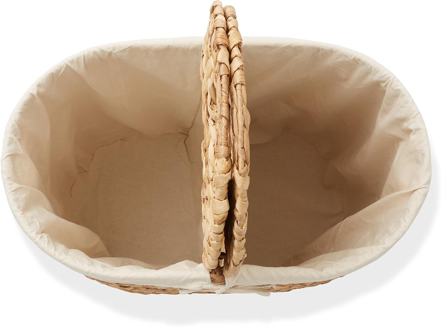 Casafield Oval Laundry Hamper with Lids and Removable Liner Bags - Natural, Woven Water Hyacinth 2-Section Laundry Basket Sorter for Clothes and Towels