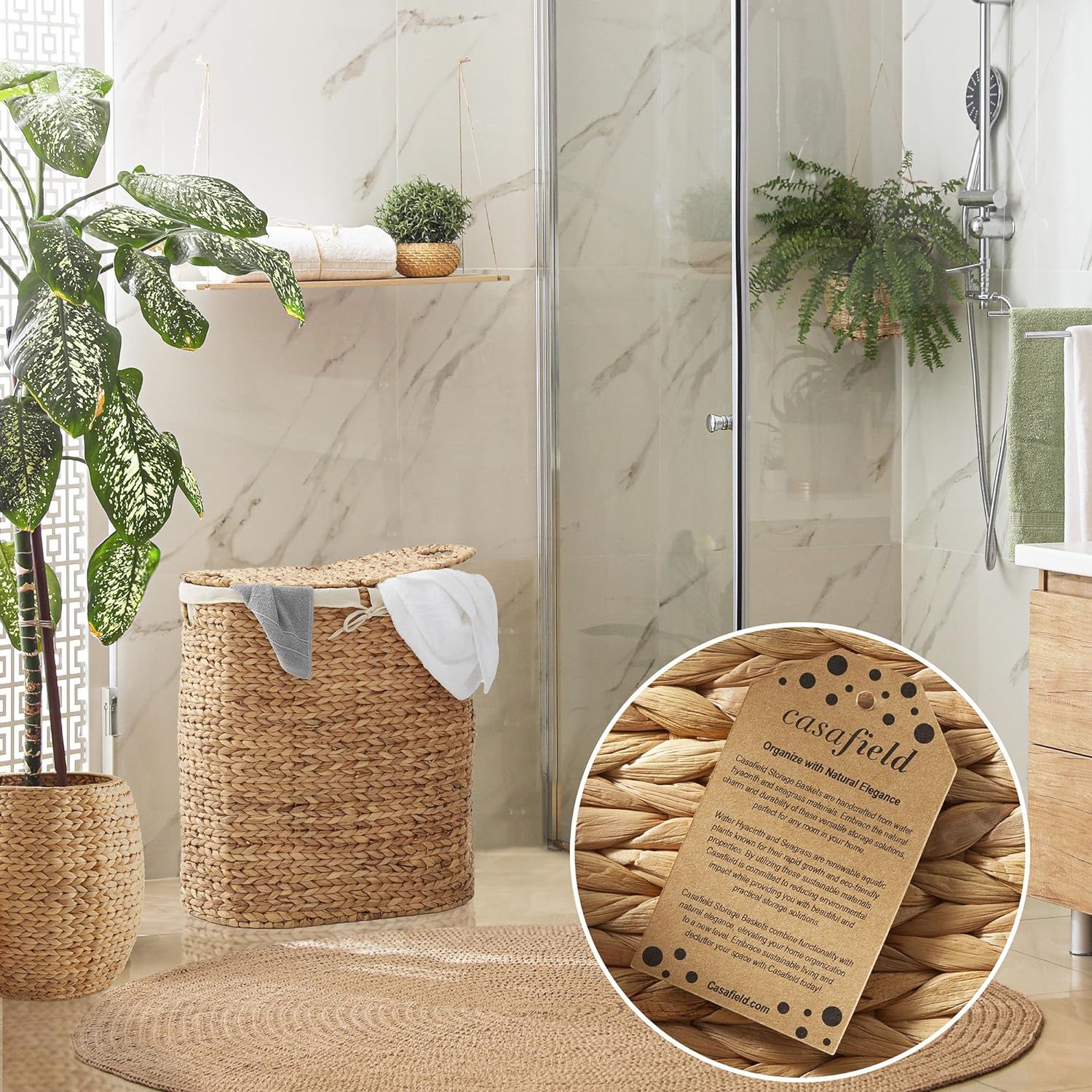 - Water hyacinth construction: Crafted from sustainable water hyacinth, this oval, 2-section laundry hamper basket will add a touch of natural beauty to your home while supporting eco-conscious living. It features a woven design, adding style and practicality to your home decor.