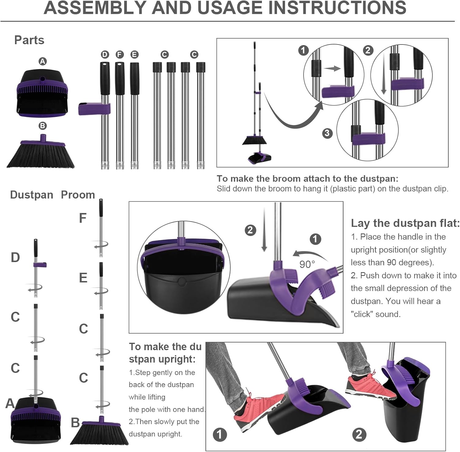 - Improved Broom and Dustpan Combo Set: Upgrade your cleaning routine with this enhanced combo, a flexible and valuable addition to your home cleaning tools. Featuring a sturdy stainless steel handle and a roomy dustpan, this set is perfect for efficient cleaning. The soft rubber lip forms a tight seal between the floor and dustpan, ensuring a mess-free experience. Sweep confidently with this broom and dustpan set, designed to eliminate ash leakage.