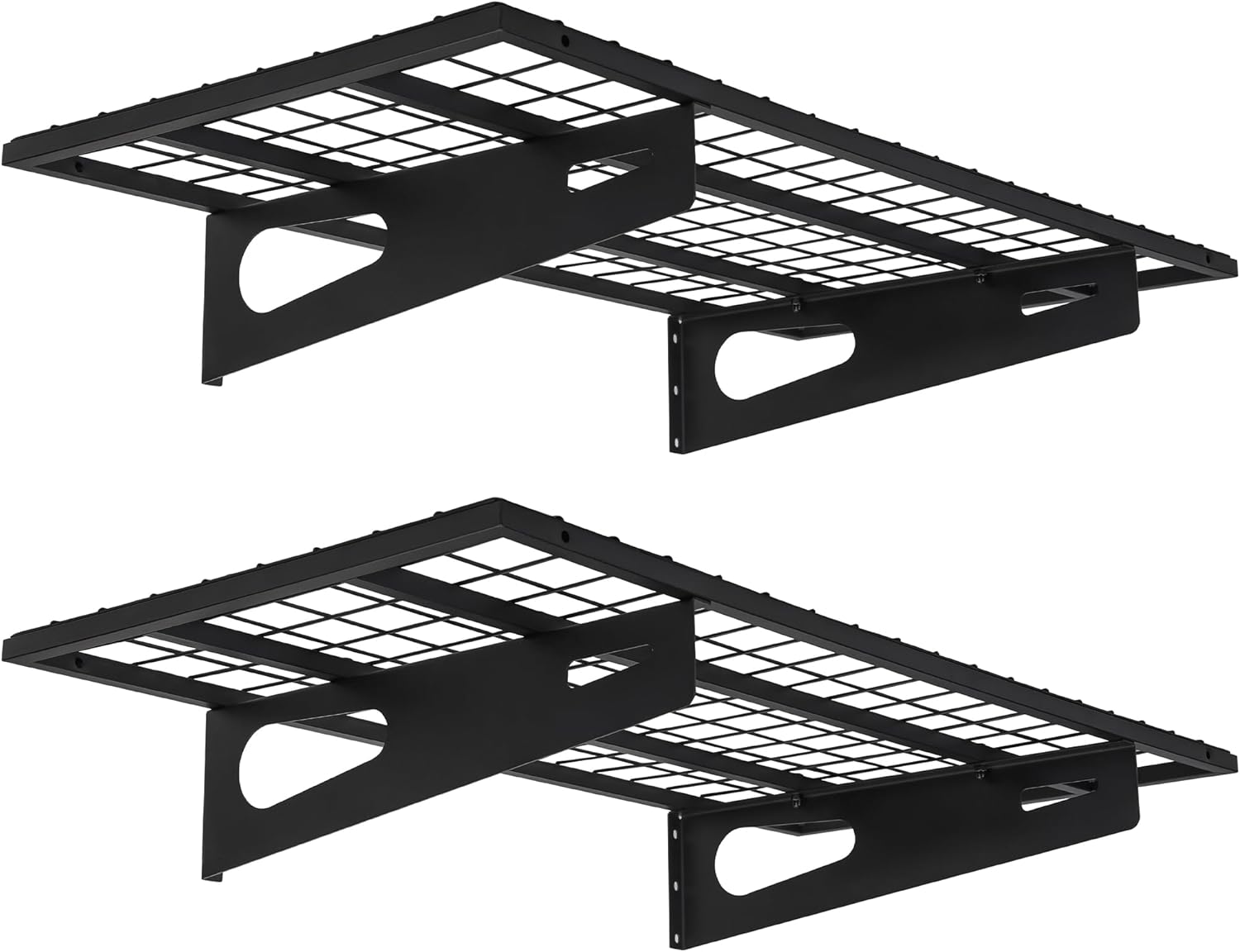 2-Pack 1.5x3FT Garage Shelving 17.7-inch-by-35.8-inch Wall Shelf Garage Storage Rack Wall Mounted Floating Shelves, Black