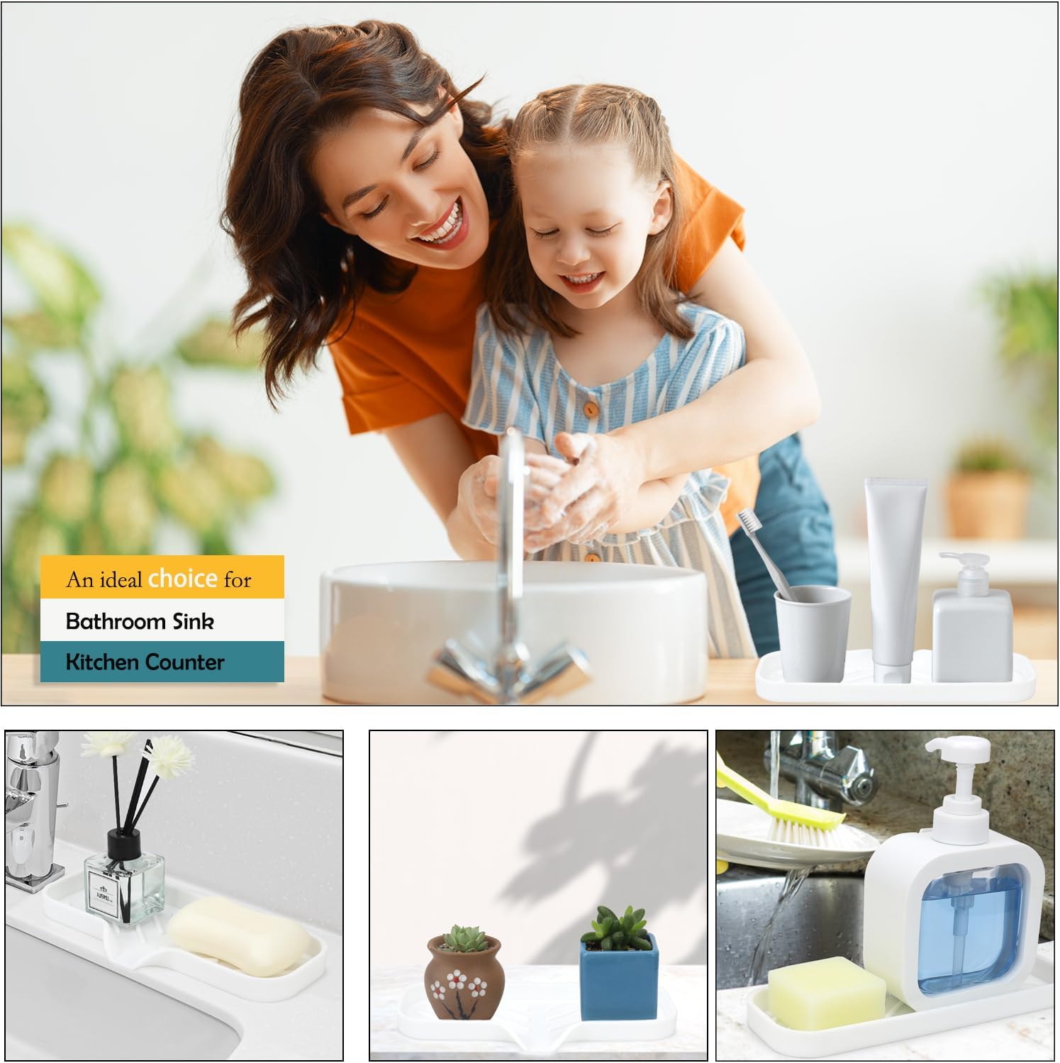- ★Safe, Easy to Clean, Easy to Store: The soap dispenser tray is made from premium food grade silicone, so it’s safe for use in the kitchen or bathroom. The smooth surface of the soap dish makes it easy to clean, you can simply rinse or brush it with water, and it’s dishwasher safe. And its compact size makes it easy to store when not in use.