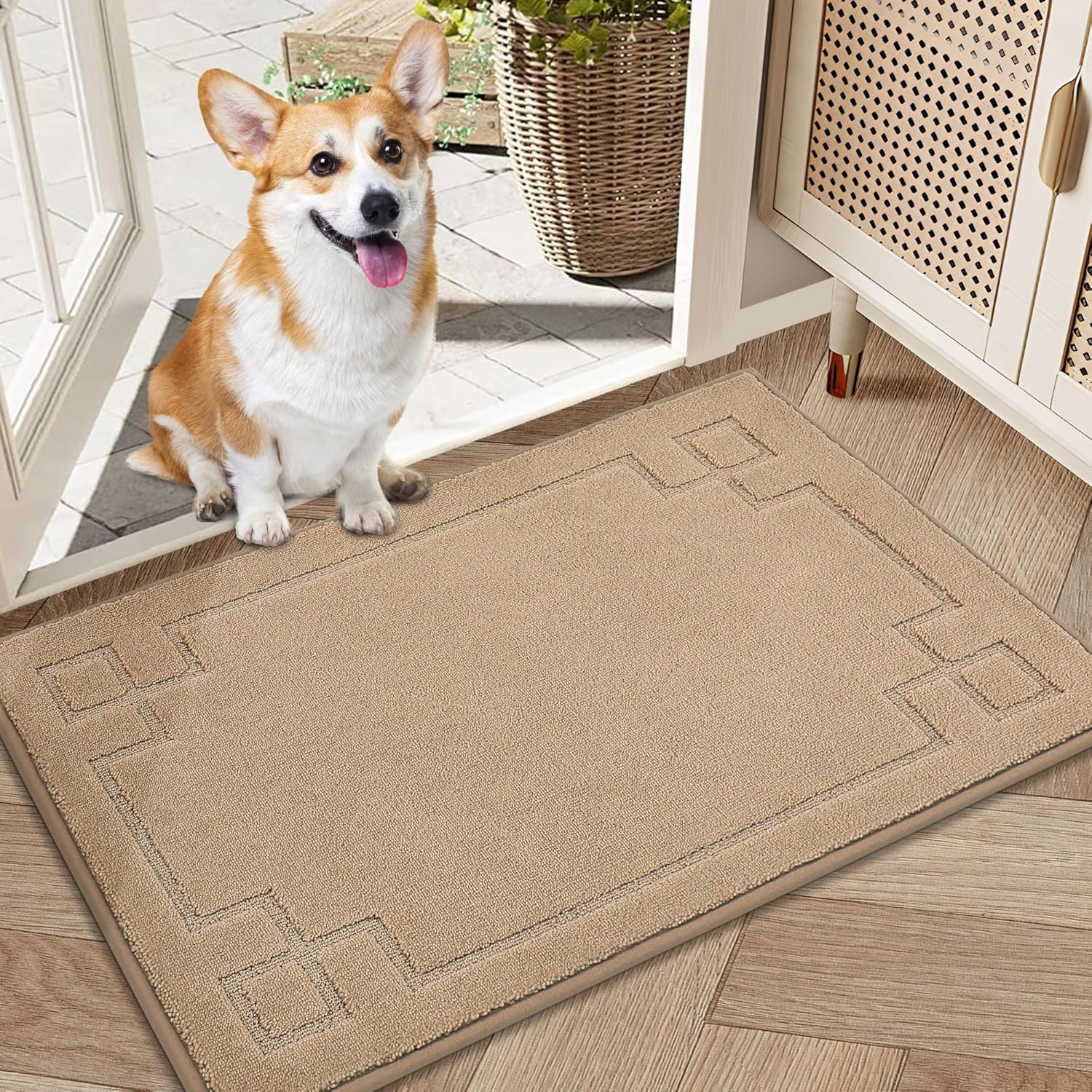 BEQHAUSE Door Mat 20" x 32", Non-Slip Door Mats Indoor Entryway Rugs Washable Low-Profile Absorbent and Stain Resist Floor Mats, Dog Door Mat for Front Back Door, Muddy Wet Shoes & Paws, Beige