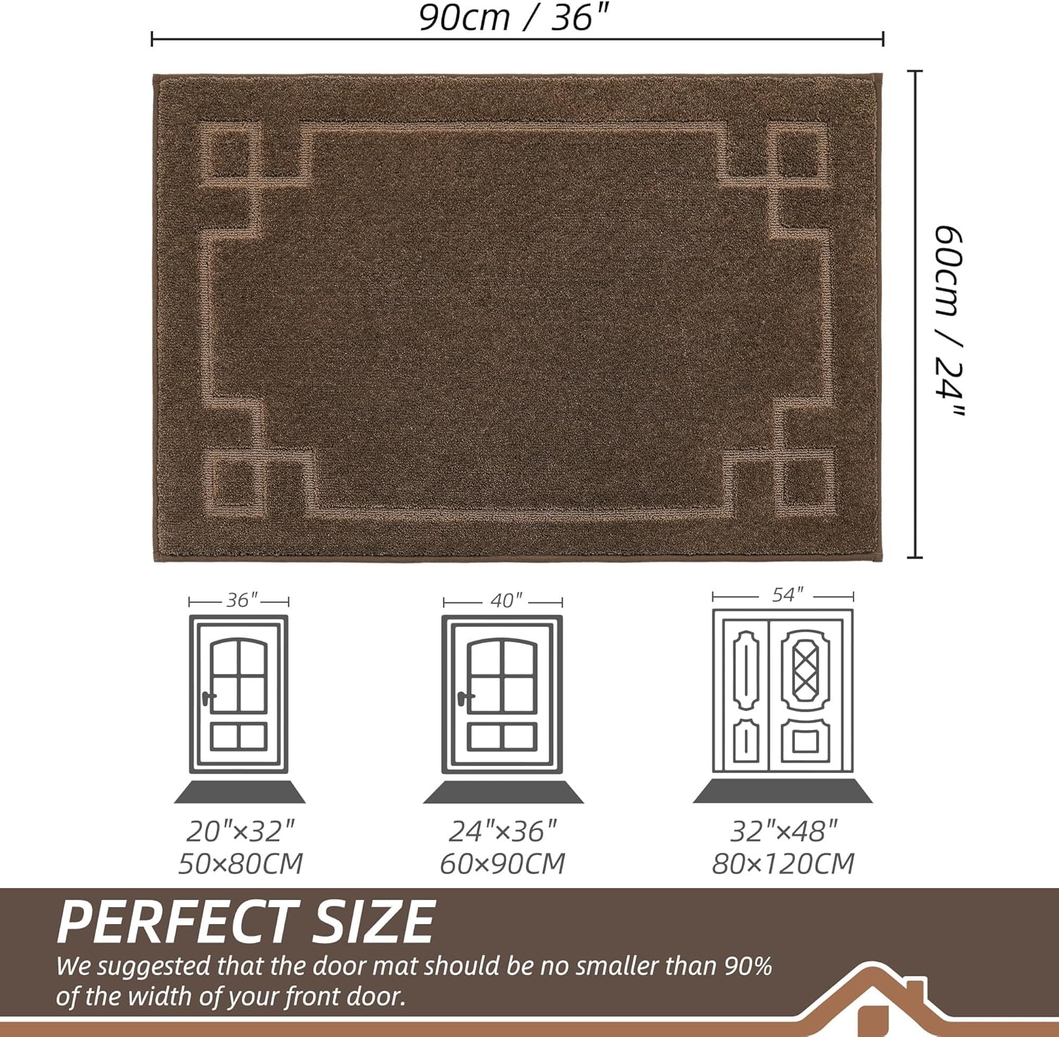 BEQHAUSE Door Mat 24" x 36", Non-Slip Door Mats Indoor Entryway Rugs Washable Low-Profile Absorbent and Stain Resist Floor Mats, Dog Door Mat for Front Back Door, Muddy Wet Shoes & Paws, Brown