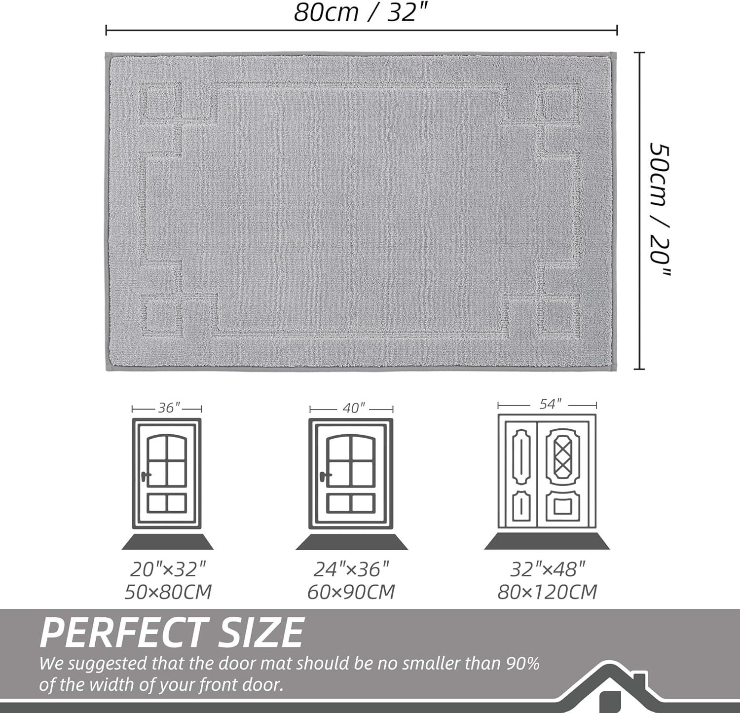 BEQHAUSE Door Mat 20" x 32", Non-Slip Door Mats Indoor Entryway Rugs Washable Low-Profile Absorbent and Stain Resist Floor Mats, Dog Door Mat for Front Back Door, Muddy Wet Shoes & Paws, Light Grey