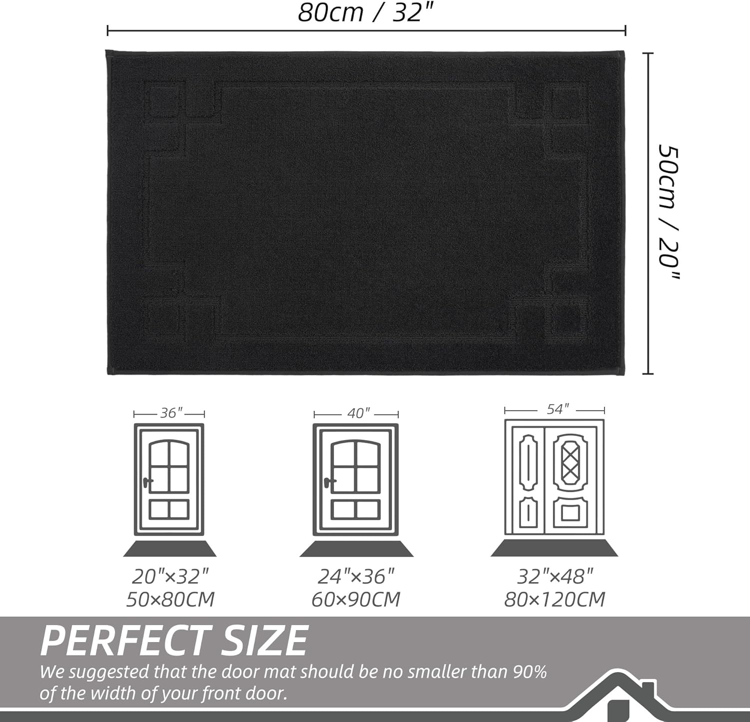 BEQHAUSE Door Mat 20" x 32", Non-Slip Door Mats Indoor Entryway Rugs Washable Low-Profile Absorbent and Stain Resist Floor Mats, Dog Door Mat for Front Back Door, Muddy Wet Shoes & Paws, Black