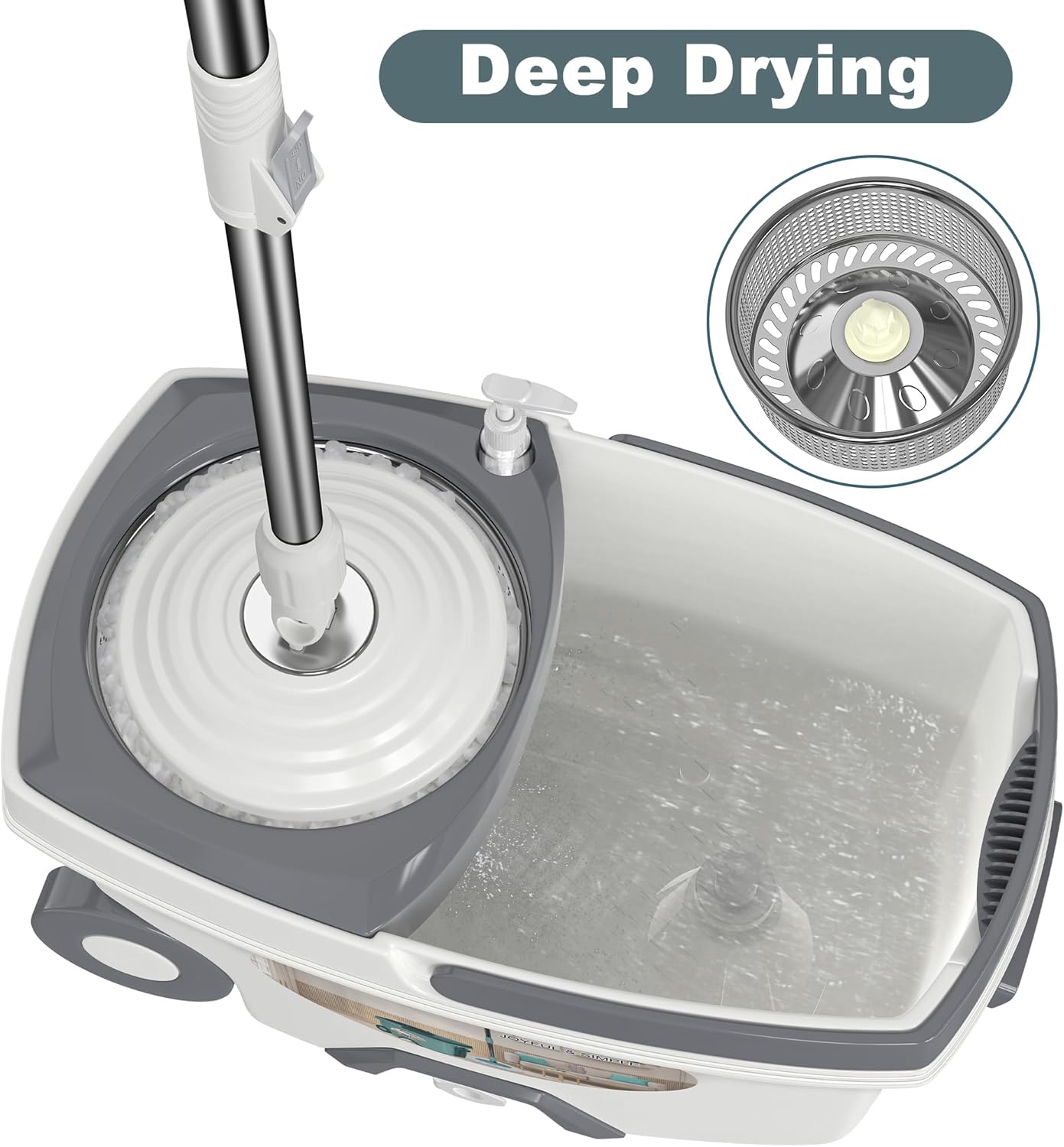 - CONSIDERATE DESIGN - This luxury spin mop system has two wheels , one pull handle, one carry handle, bringing extra comfort to the disabled and people who cannot manage heavy weight. Also have one drainage plug for draining water and one detergent dispenser for dirtier floor