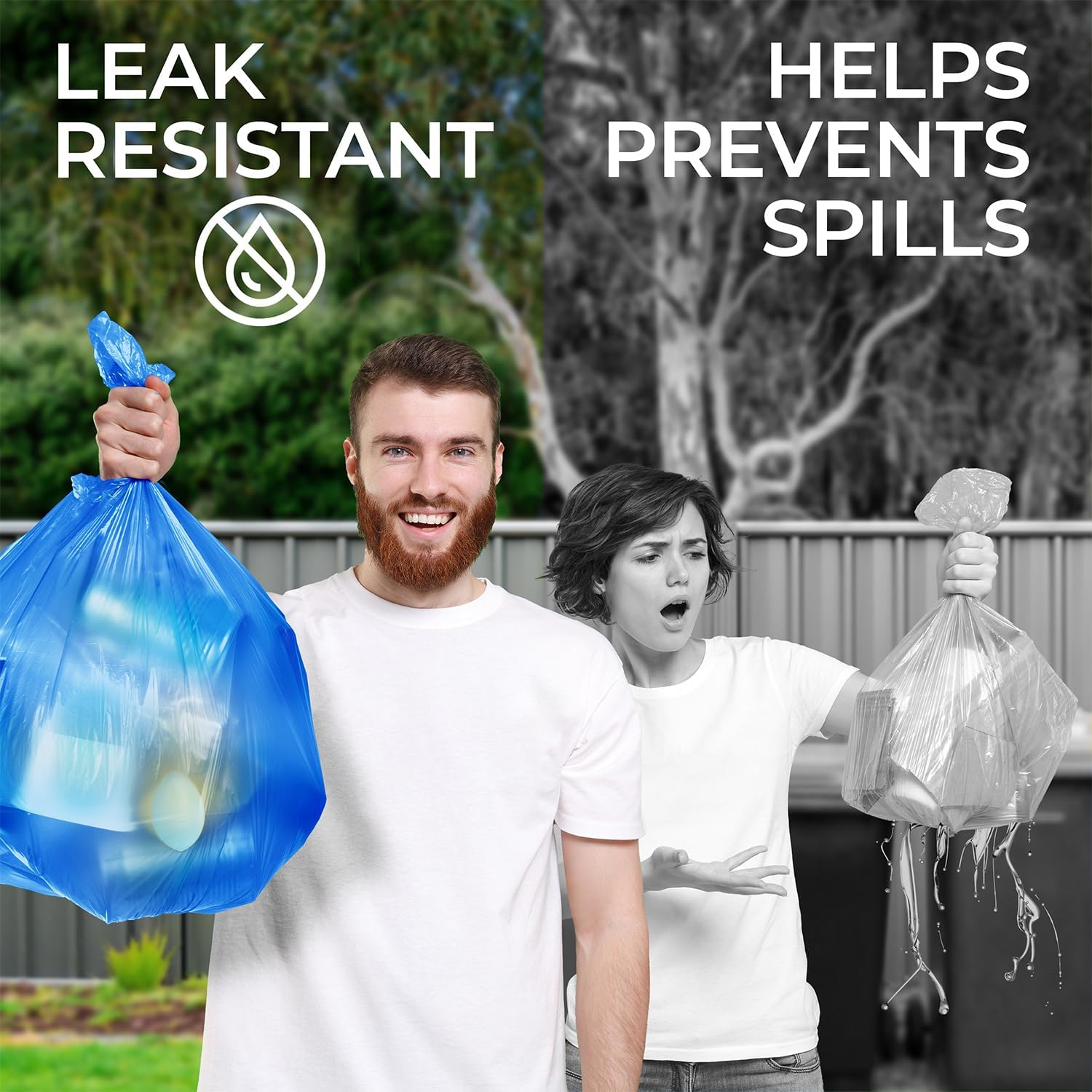 - Leak-Proof Guarantee: Say goodbye to messy clean-ups with our leak-proof garbage bags. Designed to contain liquids and prevent leaks, these blue recycling bags offer reliable containment for all your waste materials.