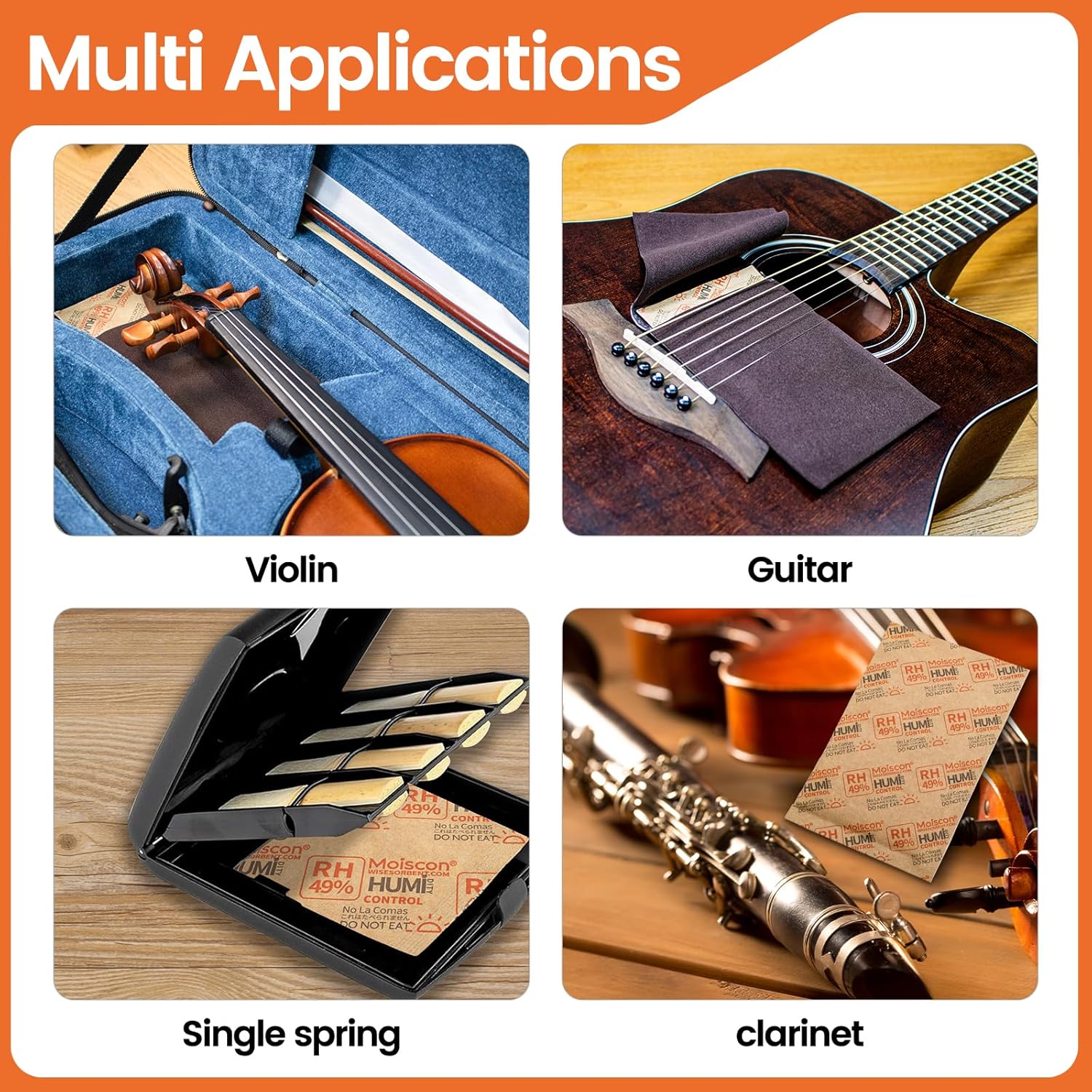 49% Two-Way Humidity Control Packs for Guitars & Wooden Instruments - 70g Moisture Absorbers Acoustic Guitar Humidifier for Case Maintenance - Individually Wrapped Hydration Packets[5 PACK]