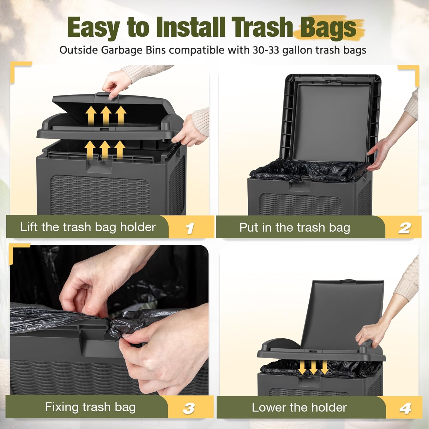 - Various Outdoor Scenarios: Our outdoor trash cans are perfect for use on patios, pools, poolside, porches, gardens, backyards and more.