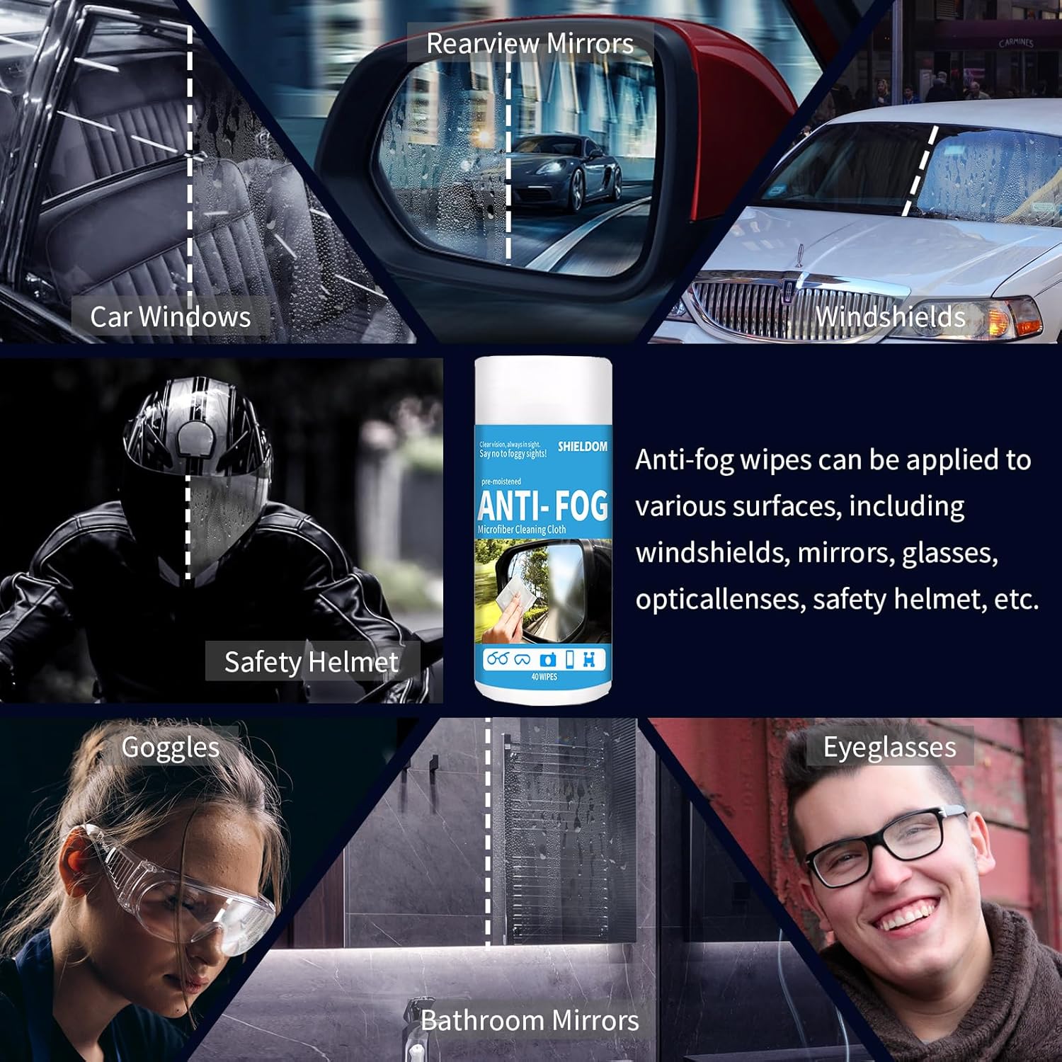 - Effective Anti-Fog Formula: Our pre-moistened defogger wipes are expertly crafted to prevent fogging on a variety of surfaces, including bathroom mirrors, shower doors, car windshields, windows, helmets, and goggles, ensuring crystal-clear visibility every time