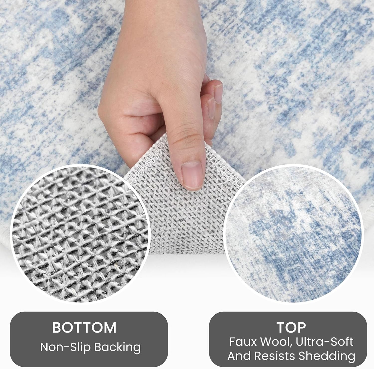 IOHOUZE Abstract Area Rugs 5x7 Ft Washable Rugs for Living Room, Non Slip Dining Room Rug, Printed Faux Wool Rugs for Bedroom, Floor Carpet for Office Nursery Playroom, Light Blue White