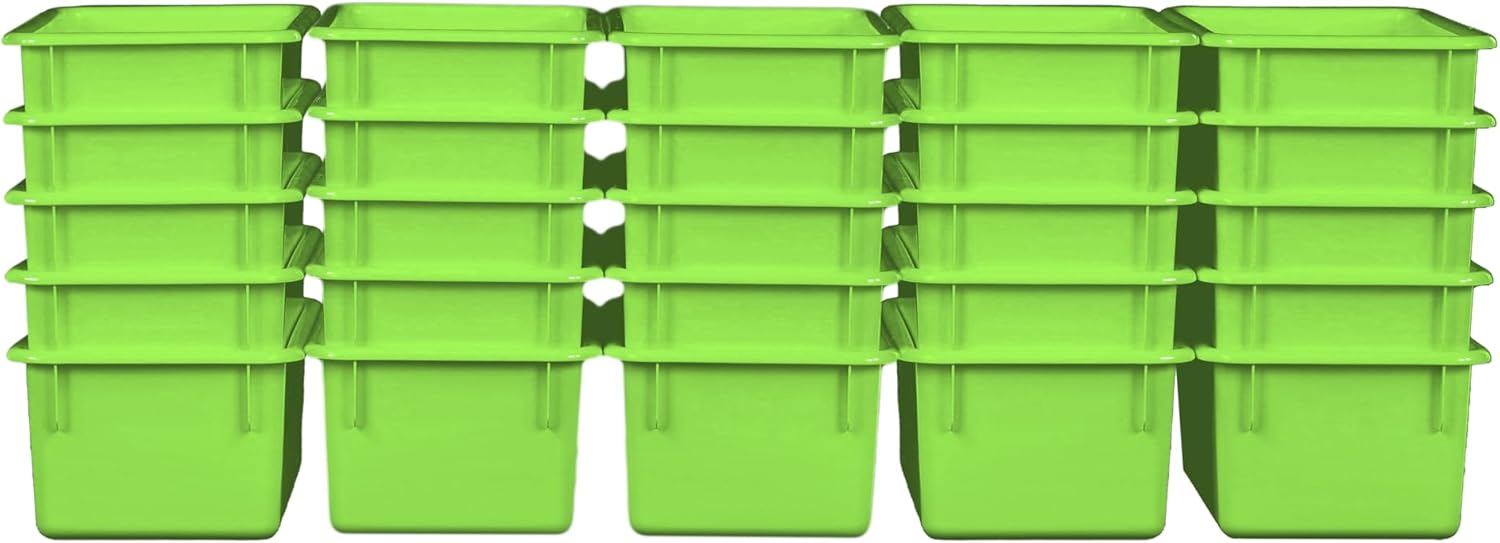 Wood Designs Cubby Storage Bin, Heavy Duty Plastic Containers for Kids Lime Green Cubby Tray Set of 25
