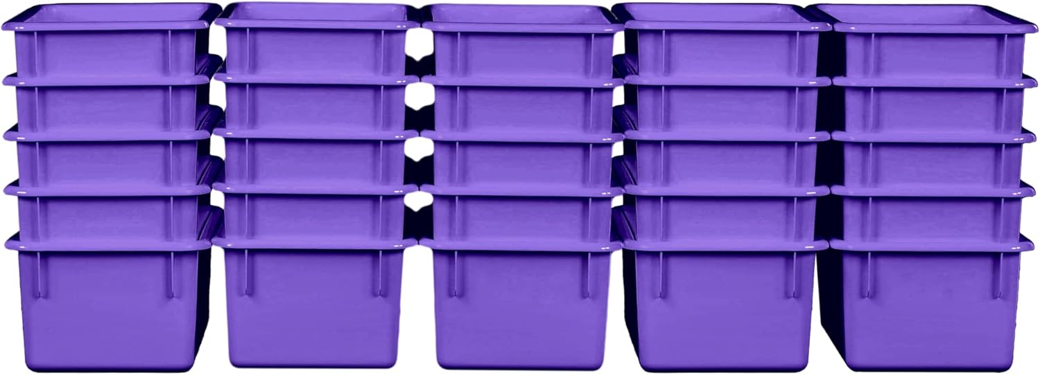 Wood Designs Cubby Storage Bin, Heavy Duty Plastic Containers for Kids Purple Cubby Tray Set of 25