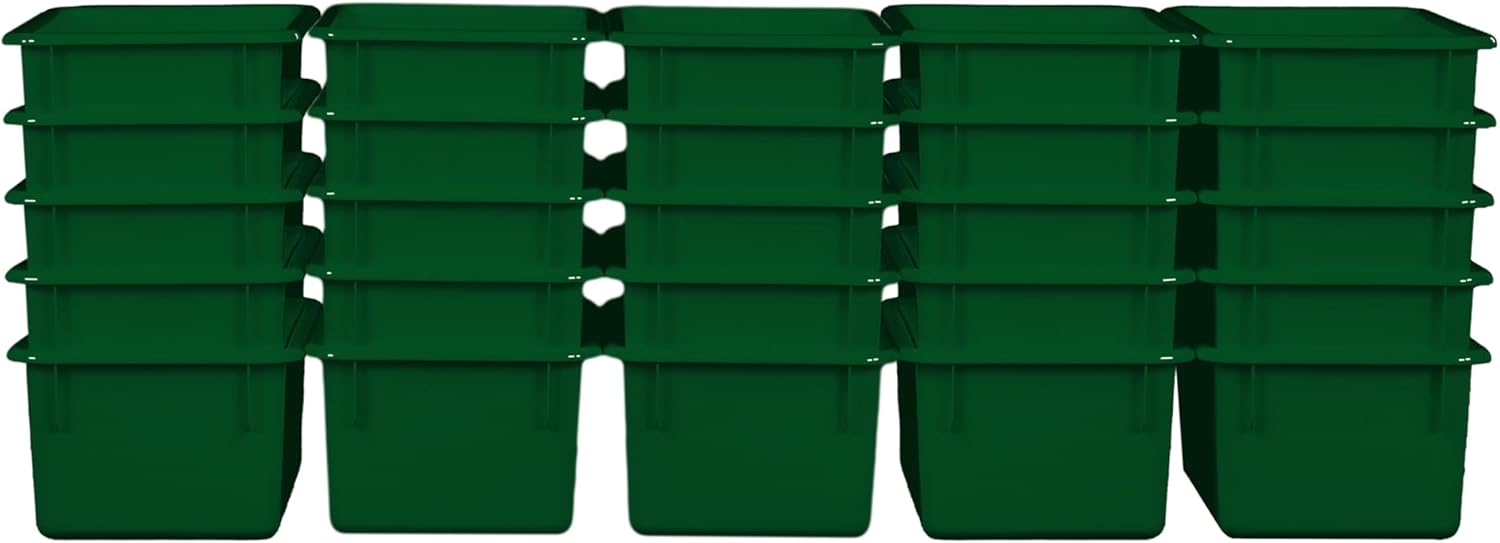 Wood Designs Cubby Storage Bin, Heavy Duty Plastic Containers for Kids Green Cubby Tray Set of 25