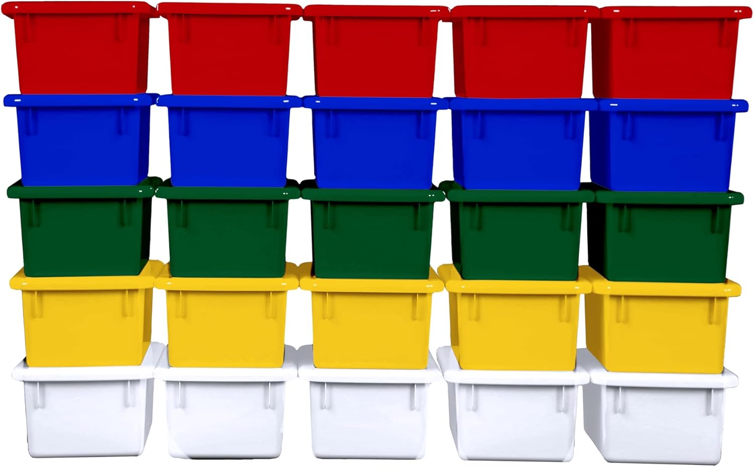 Wood Designs Cubby Storage Bin, Heavy Duty Plastic Containers for Kids Assorted Cubby Tray Set of 25