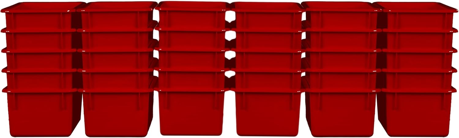 Wood Designs Cubby Storage Bin, Heavy Duty Plastic Containers for Kids Red Cubby Tray Set of 30