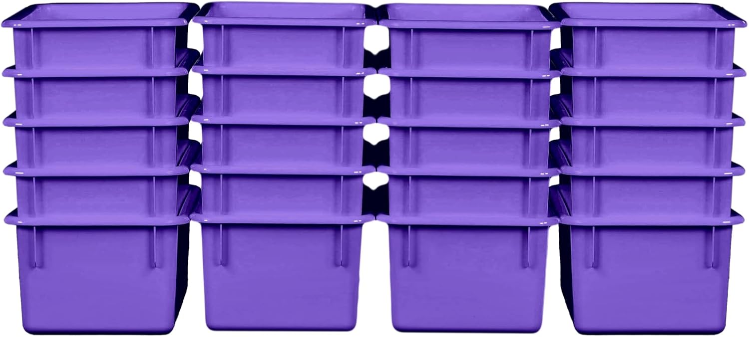Wood Designs Cubby Storage Bin, Heavy Duty Plastic Containers for Kids Purple Cubby Tray Set of 20