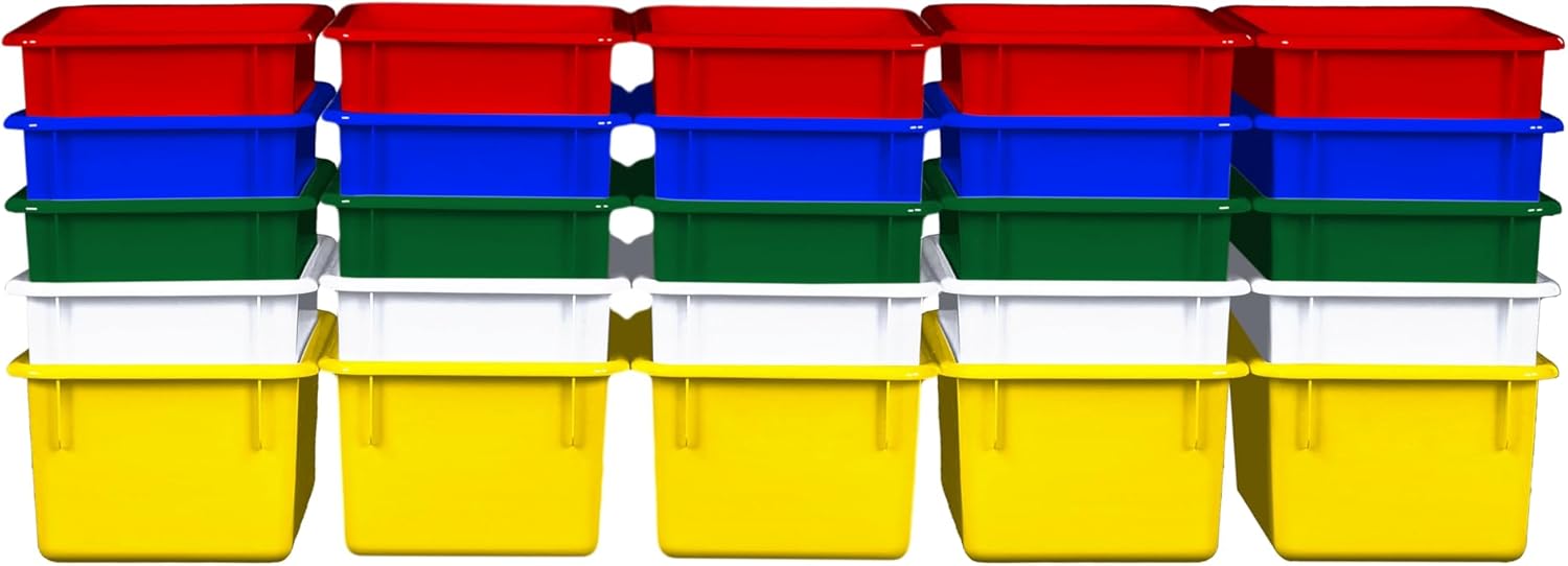Wood Designs Cubby Storage Bin, Heavy Duty Plastic Containers for Kids Assorted Cubby Tray Set of 30