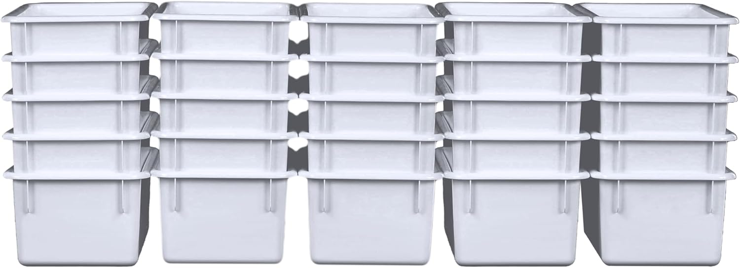 Wood Designs Cubby Storage Bin, Heavy Duty Plastic Containers for Kids White Cubby Tray Set of 25