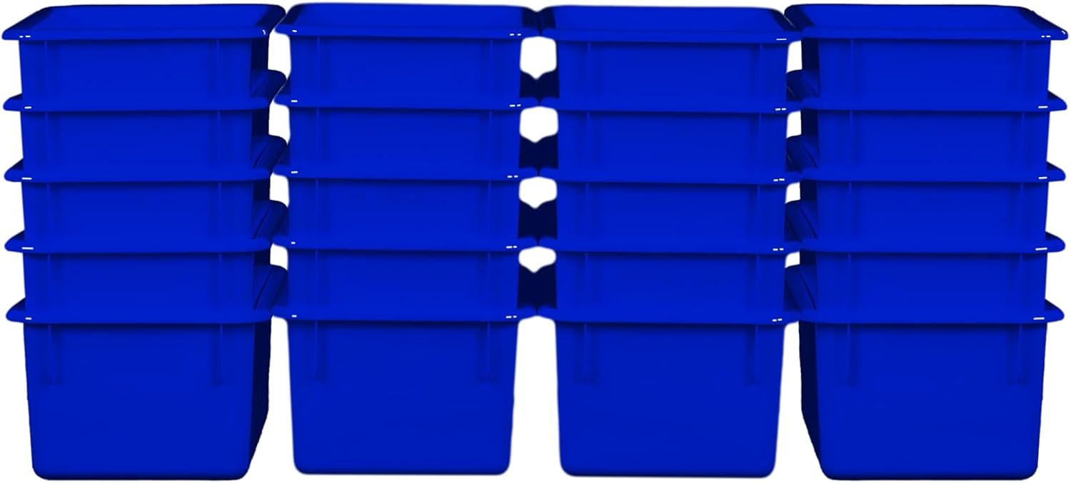 Wood Designs Cubby Storage Bin, Heavy Duty Plastic Containers for Kids Blue Cubby Tray Set of 20