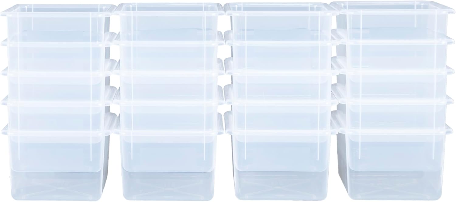 Wood Designs Cubby Storage Bin, Heavy Duty Plastic Containers for Kids Translucent Clear Cubby Tray Set of 20