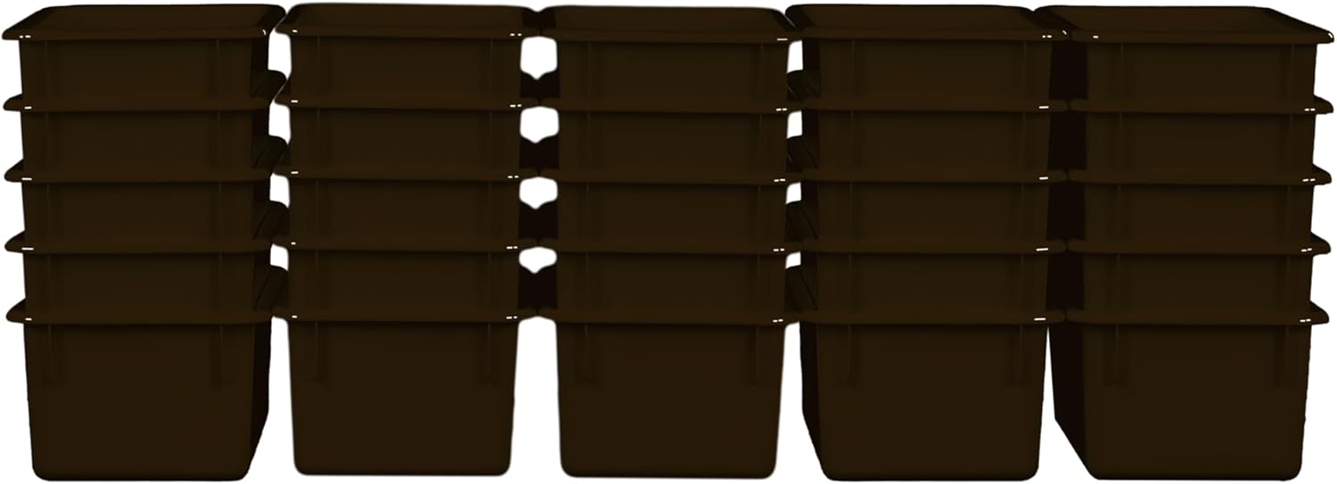 Wood Designs Cubby Storage Bin, Heavy Duty Plastic Containers for Kids Brown Cubby Tray Set of 25