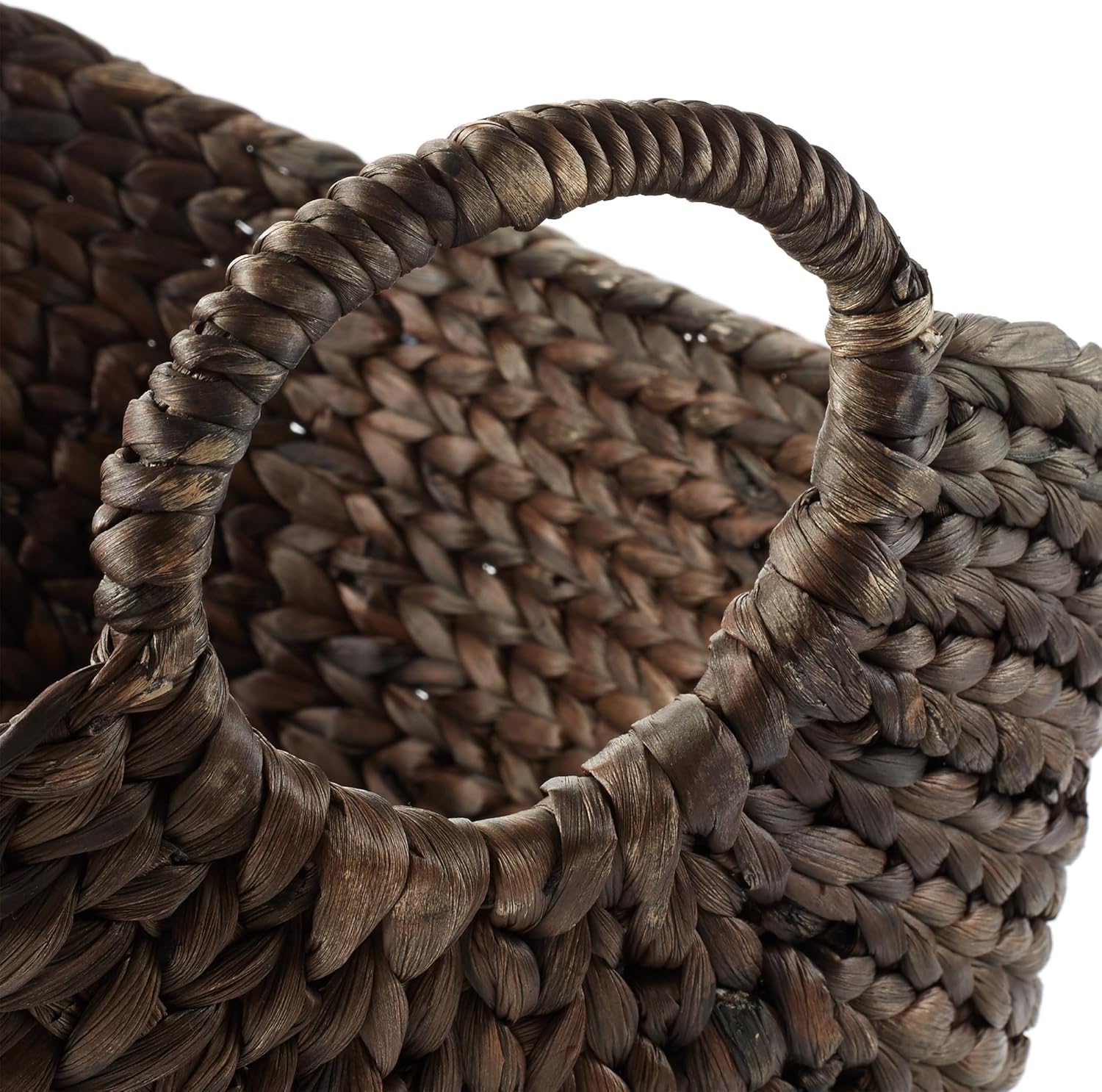 Casafield Large Laundry Boat Basket with Handles - Espresso, Woven Water Hyacinth Multipurpose Storage Organizer for Throw Blankets, Bathroom, Bedroom, Living Room
